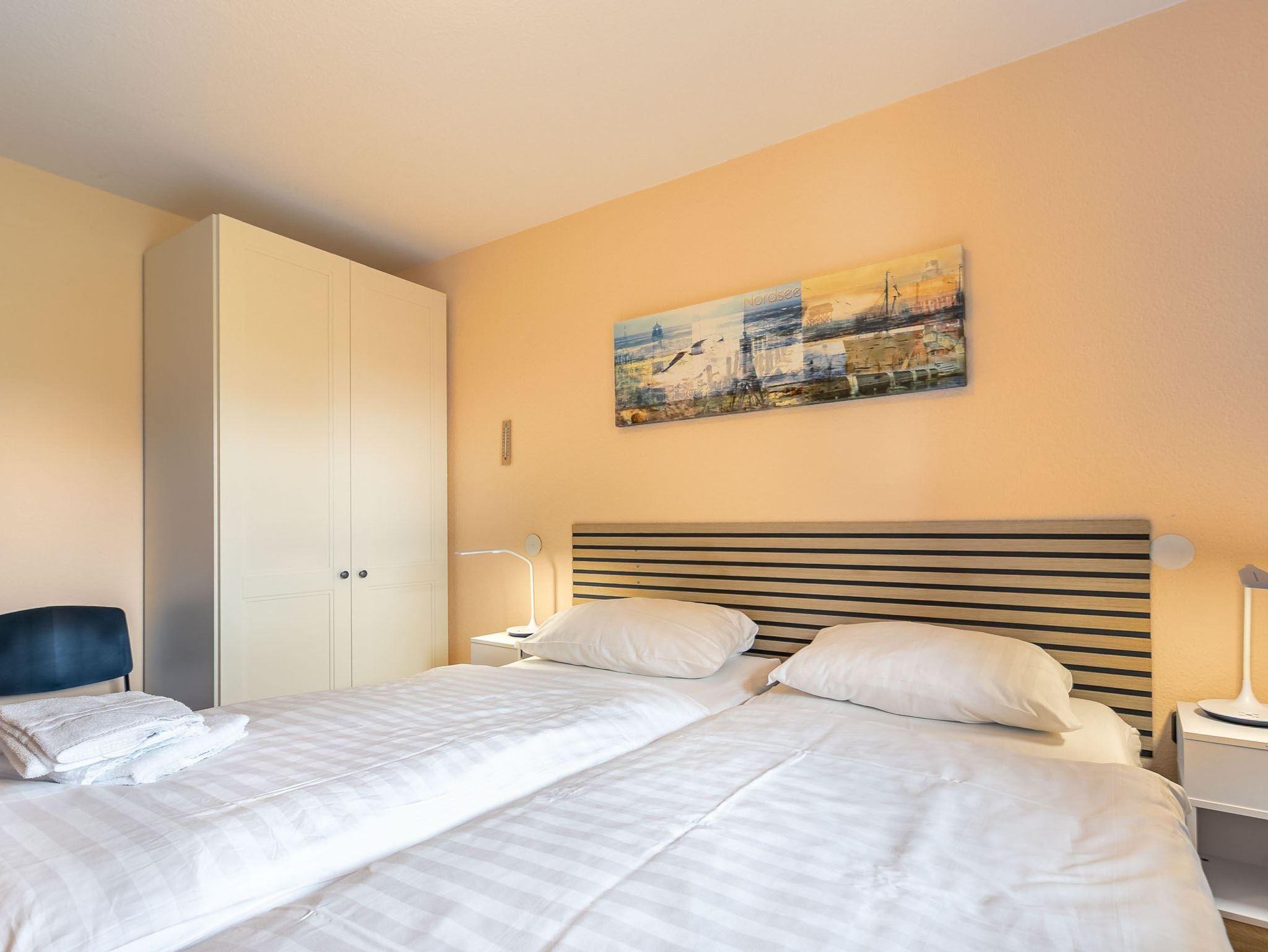 Schlafzimmer mit 2 Einzelbetten (je 90x200cm), Kleiderschrank und Stuhl