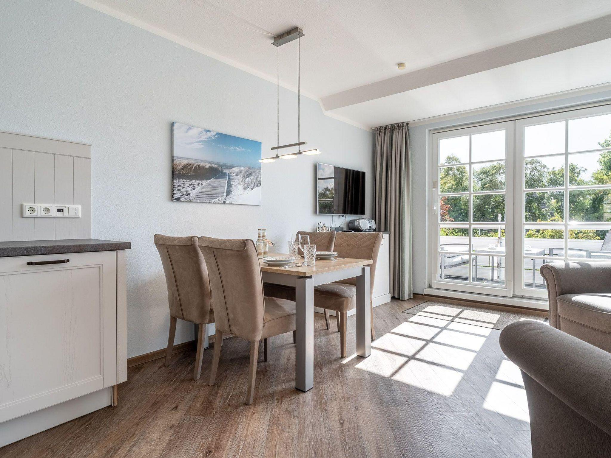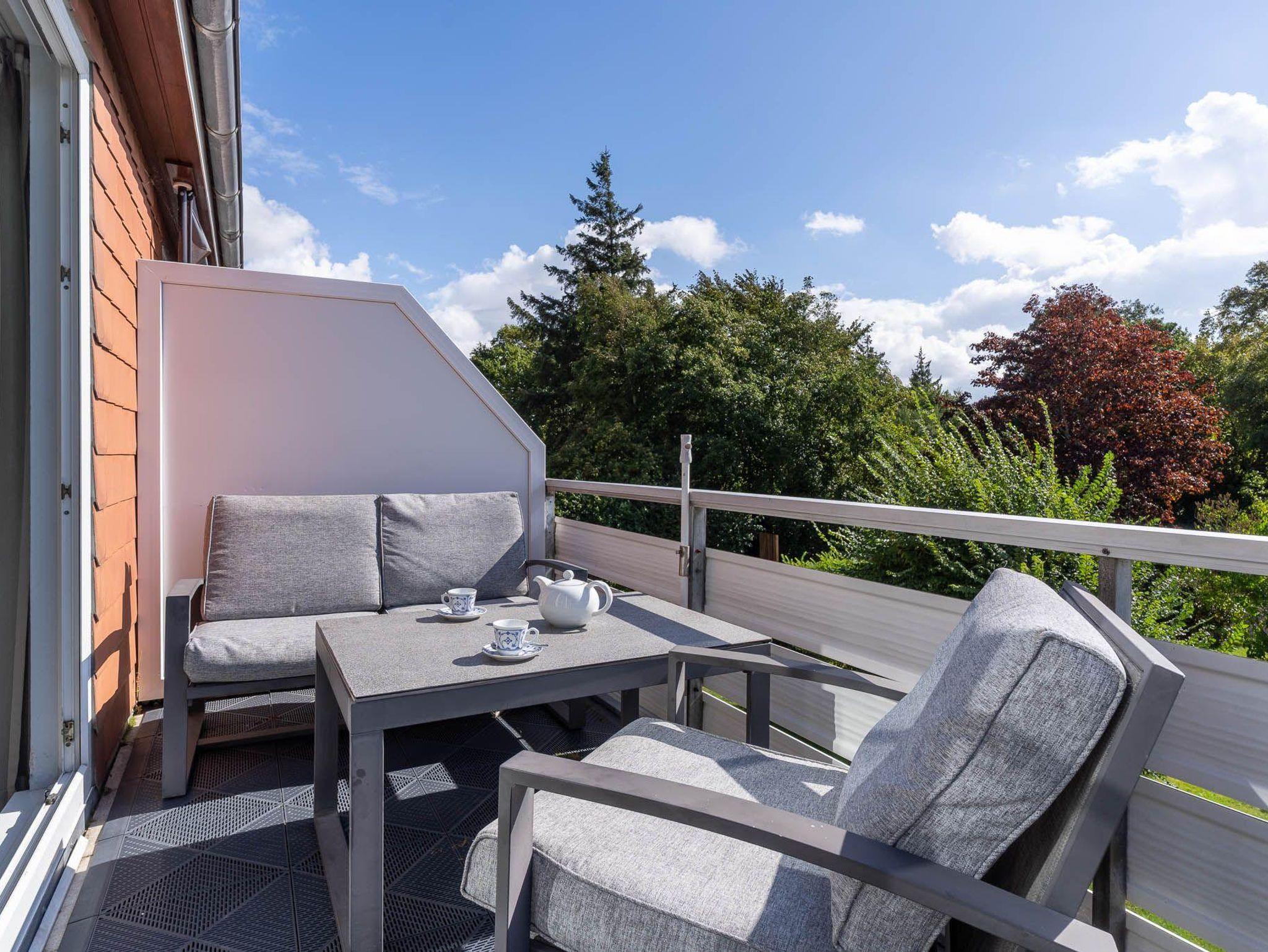 Ein weiteres Highlight ist der private Balkon mit Gartenblick und Gartenmöbeln – ein idealer Ort zum Verweilen nach einem Tag am Strand oder bei Spaziergängen in der Umgebung. Bücher und Spiele stehen für gemütliche Stunden bereit. Ein Safe sorgt für die sichere Aufbewahrung Ihrer Wertsachen.
