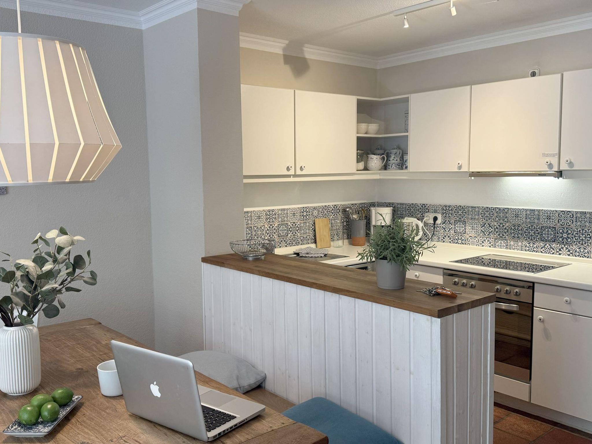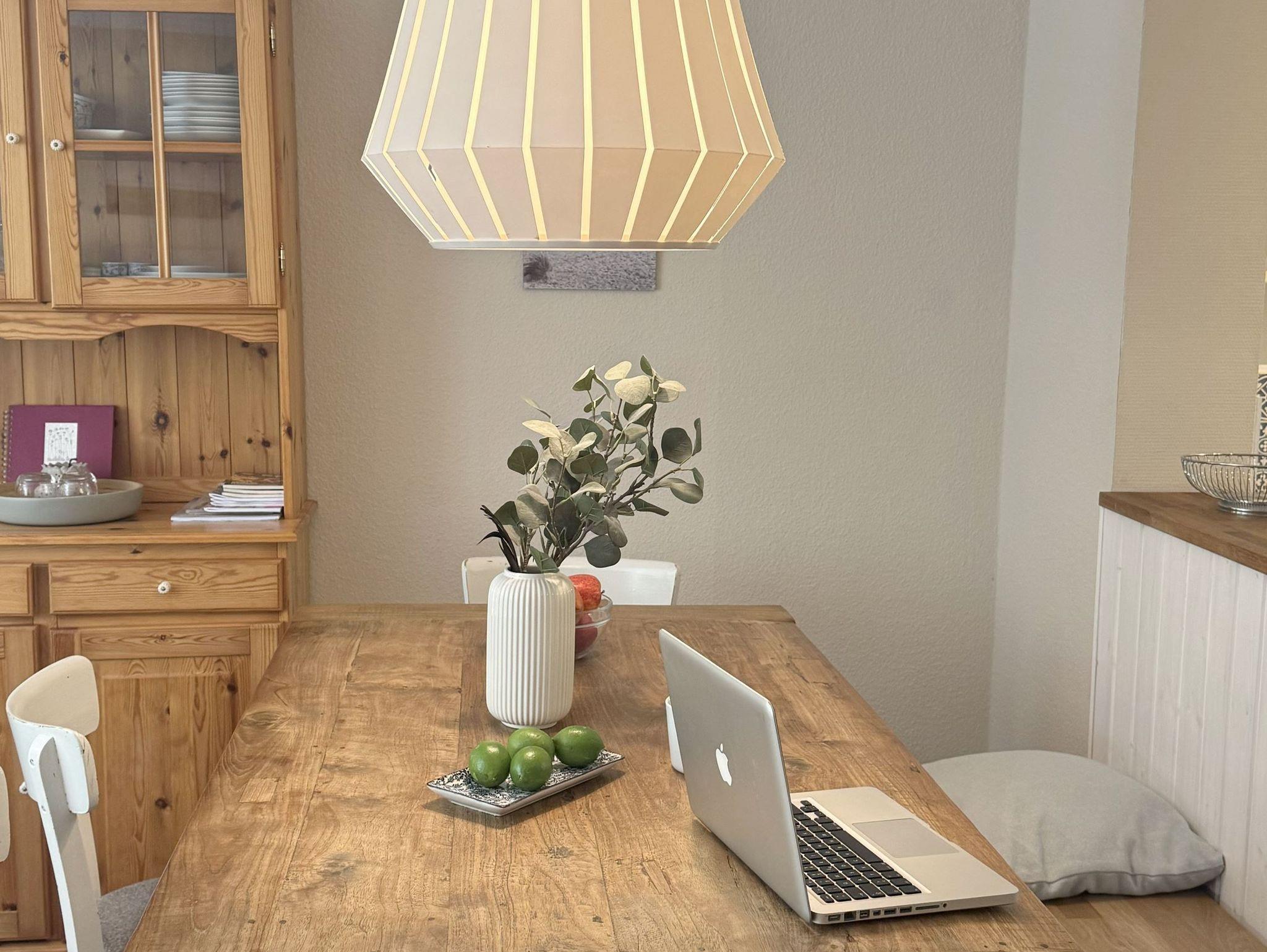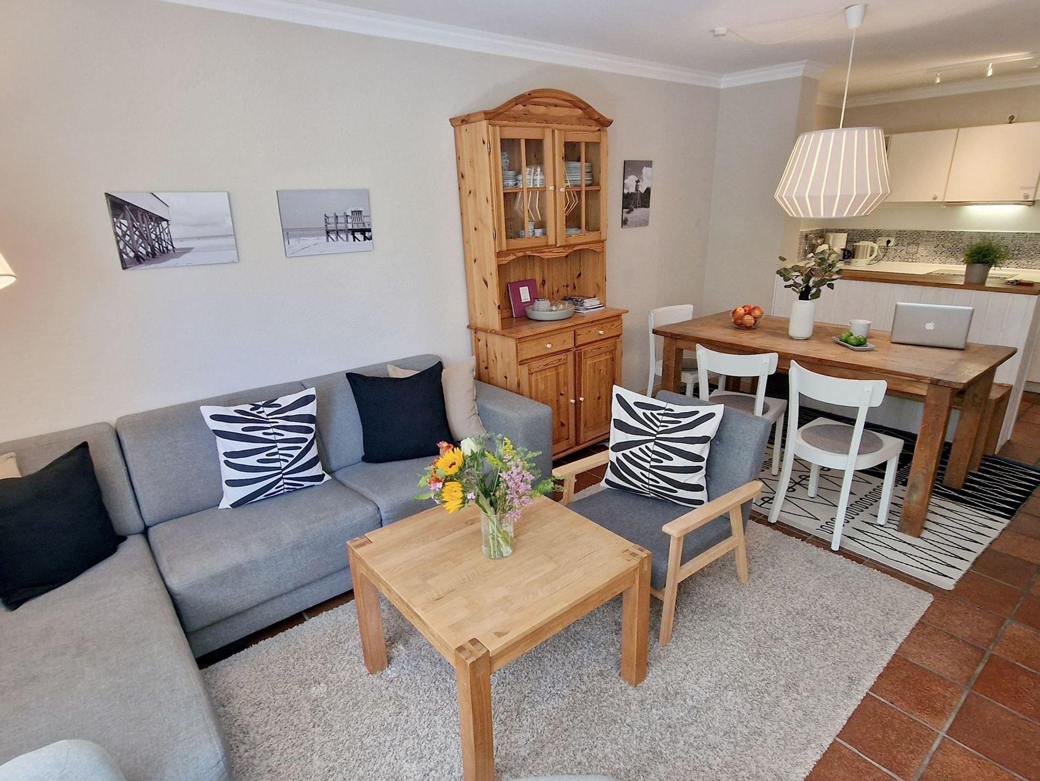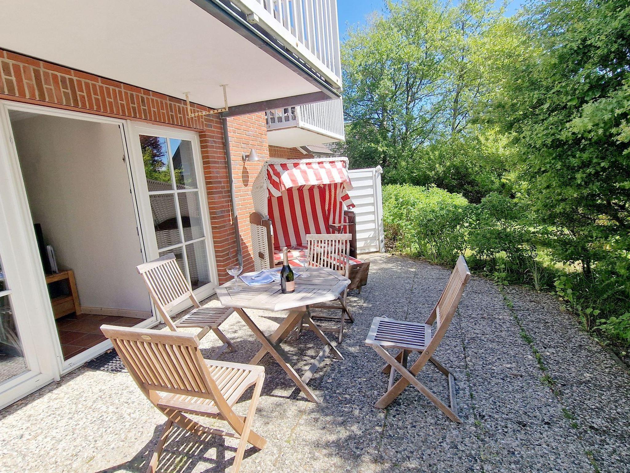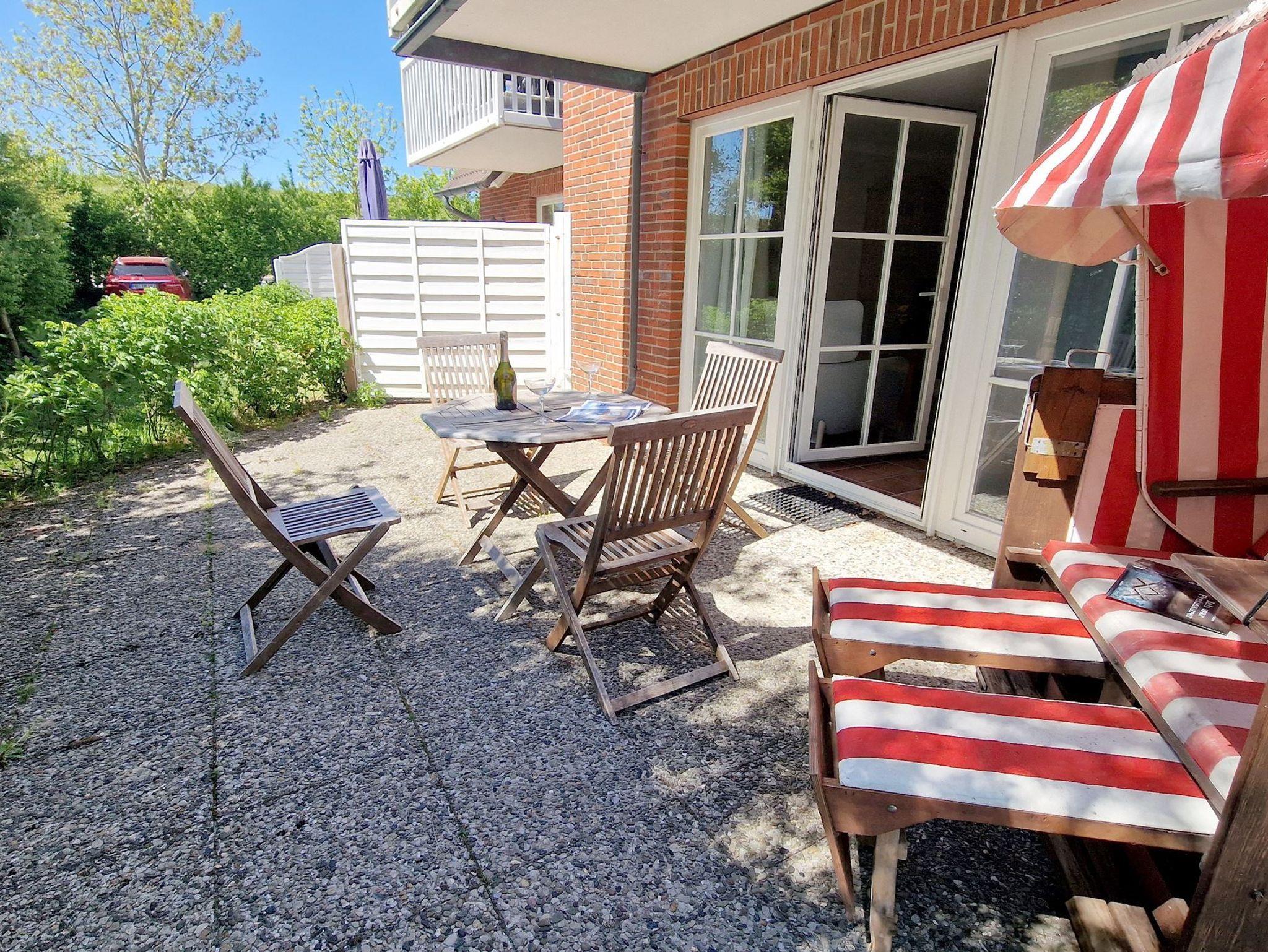 Stilvoll wohnen hinterm Seedeich Passend zu seinem Namen liegt das Haus Achtern Diek direkt hinterm Seedeich und in unmittelbarer Nähe zum Strandweg im Ortsteil Ording. Auf dem Gelände befinden sich ein Abstellraum für Fahrräder und jeweils ein zur Ferienwohnung gehöriger Pkw-Stellplatz. Eine Waschmaschine und ein Trockner können von der Gemeinschaft genutzt werden. In der stilvollen 3-Zimmer-Nichtraucherwohnung Achtern Diek Nr. 02 haben bis zu 5 Gäste ausreichend Platz um einen erholsamen Urlaub zu verbringen. Auf der halb überdachten Terrasse in Süd-Westlage können Sie im Strandkorb den Tag verbummeln. Das in der modernen Küchenzeile mit Cerankochfeld und Backofen zubereitete Essen schmeckt in der schönen Essecke besonders gut. Die Spülmaschine hilft danach beim Abwasch. Das moderne Bad ist mit einem schicken Waschtisch ausgestattet. Pkw-Stellplatz auf dem Grundstück, Nr. 2