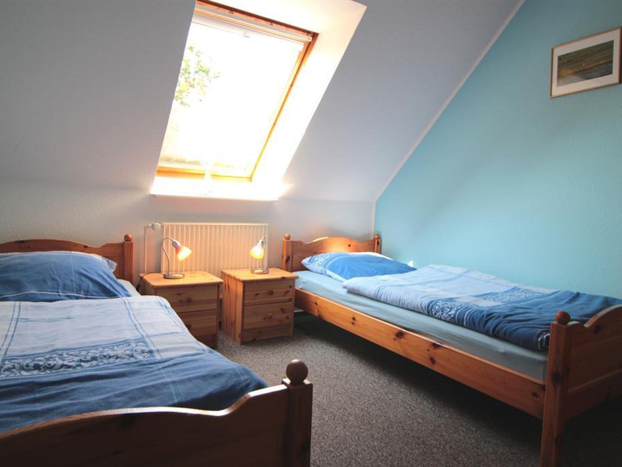 Ferienwohnung Landblick im ersten Obergeschoß für 1-4 Personen und maximal einem Baby (als 5.te Person) geeignet. Auf 50qm verteilt finden Sie einen hellen, freundlichen Wohnbereich mit großer Couchgarnitur und Sitzgruppe, eine voll ausgestattete Küchenzeile (Backofen, Geschirrspülmaschine, Kühlschrank mit Gefrierfach,...) und ein großes Duschbad/WC vor. Zum Schlummern erreichen Sie über den Flur die beiden Schlafzimmer ausgestattet mit einem Doppelbett, das andere Zimmer mit 2 Einzelbetten und ausreichend Stauraum. Auf Wunsch kann ein Babybett kostenfrei bereit gestellt werden.