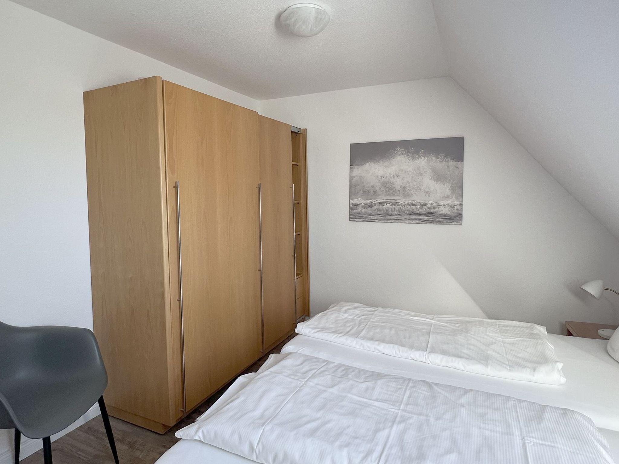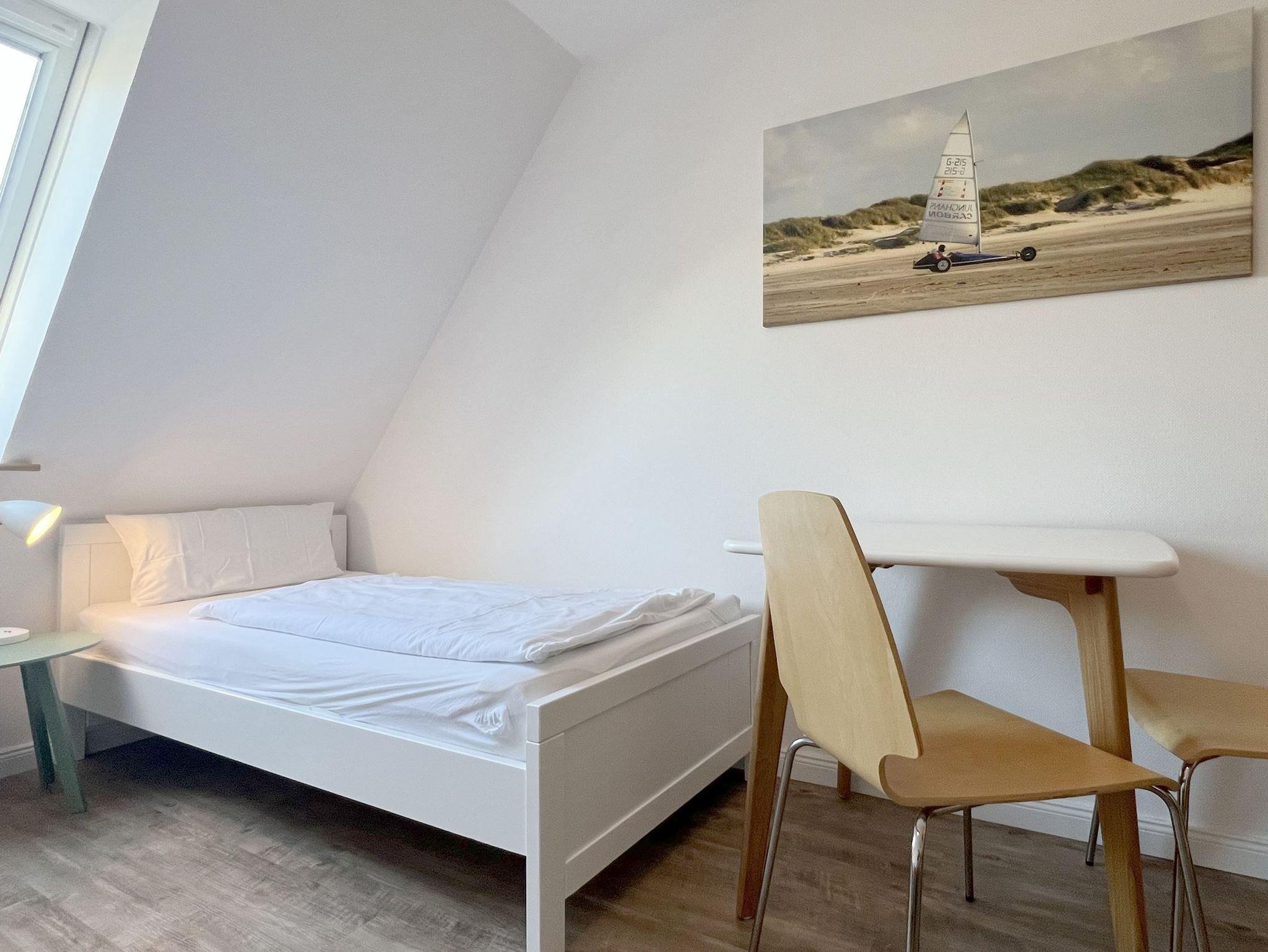 Im Haus Luna II befindet sich die Luna Wohnung 17. Mit einer Größe von 75qm bietet sie ausreichend Platz für bis zu 4 Personen. Durch ihre Bodenbeläge, Designerparkett und/oder Fliesen, ist die Wohnung für Allergiker geeignet. Von der mit einer Garderobe ausgestatteten Eingangsdiele aus führt eine gradläufige Treppe in das Obergeschoss der Wohnung. Hier befinden sich zwei Schlafzimmer. Das eine ist mit einem Doppelbett (180x200cm, getrennte Matratzen) und das andere ist mit zwei Einzelbetten (90x200cm) ausgestattet. Das Zustellen eines Kinderreisebettes ist räumlich kein Problem. Ein solches kann auch mitgebucht werden. Abgehend von der Eingangsdiele im Erdgeschoss betreten Sie einen großzügigen Wohn-Essraum mit voll ausgestatteter Küchenzeile, gemütlicher Sitzecke mit Fernseher und einem Essbereich. Sie haben kostenlosen Zugriff auf das WLAN. Das moderne Duschbad verfügt über eine begehbare Dusche, WC und Waschbecken sowie ein Außenfenster. Der raumhoch verglaste Wintergarten sorgt für eine angenehme Helligkeit im gesamten Wohn-Essbereich und ermöglicht einen wunderschönen Blick in den Garten. Ebenerdig betreten Sie die von einer kleinen Sanddüne eingefasste Südterrasse. Hier lässt es sich auf den Gartenmöbeln an frischer Nordseeluft frühstücken oder im Strandkorb ein Buch lesen.
