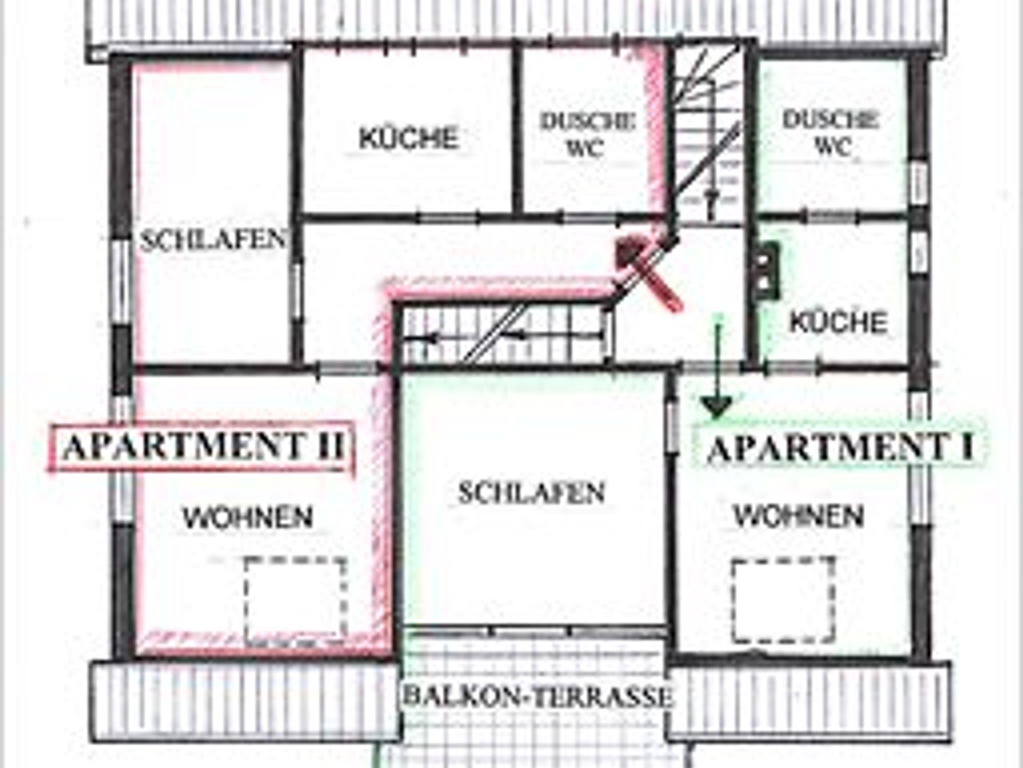 Im ersten Obergeschoss sind zwei Apartments. Das Apartment 1 ist ca. 38 m² groß. Es besteht aus einem Wohn-Esszimmer, einem Schlafzimmer, Küche und Bad. Zu diesem Apartment gehört ein großer Terassenbalkon zur sonnigen Süd-Westseite. Das Apartment ist komfortabel ausgestattet: Einbauküche mit Spülmaschine, Kochfeld und Mikrowelle; Duschbad, Föhn und Kosmetikspiegel; im Wohnzimmer Schlafcouch, Kabel-TV, WLAN Internet-zugang, Radio mit CD-Player; Balkonmöbel. Kinderbett und Hochstuhl werden auf Wunsch bereit gestellt. Die Wohnung ist sehr gut für zwei Personen geeignet oder auch für zwei Erwachsene mit einem Kind. Eine Belegung mit 4 Personen empfehlen wir nicht.