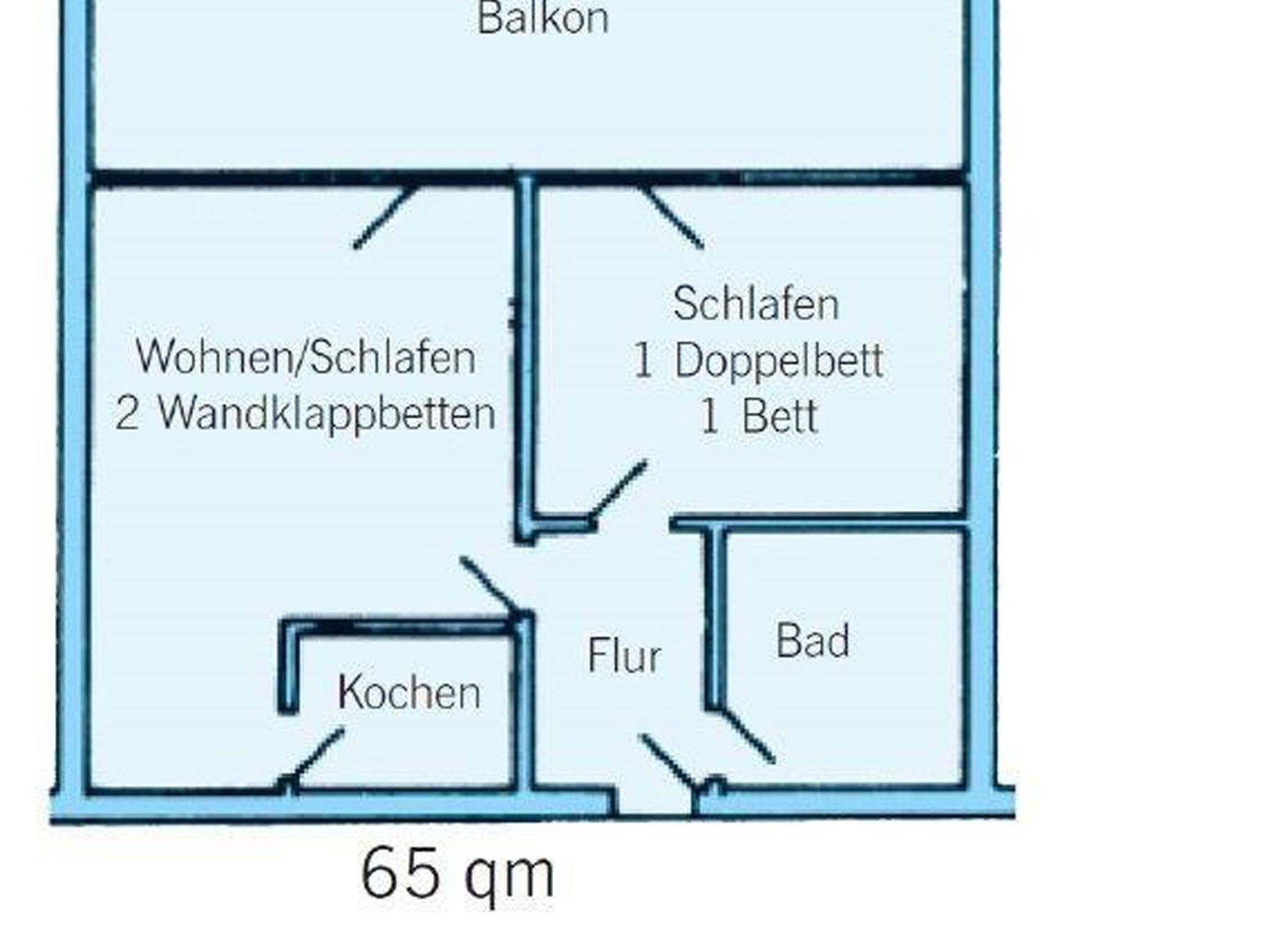 Das Objekt verfügt über ca. 65,0 qm Wohnfläche auf 2 Zimmer verteilt. (1 Wohnzimmer, 1 Schlafzimmer, 1 Badezimmer) 2x Schrankbett, 1x Doppelbett, 1x Einzelbett