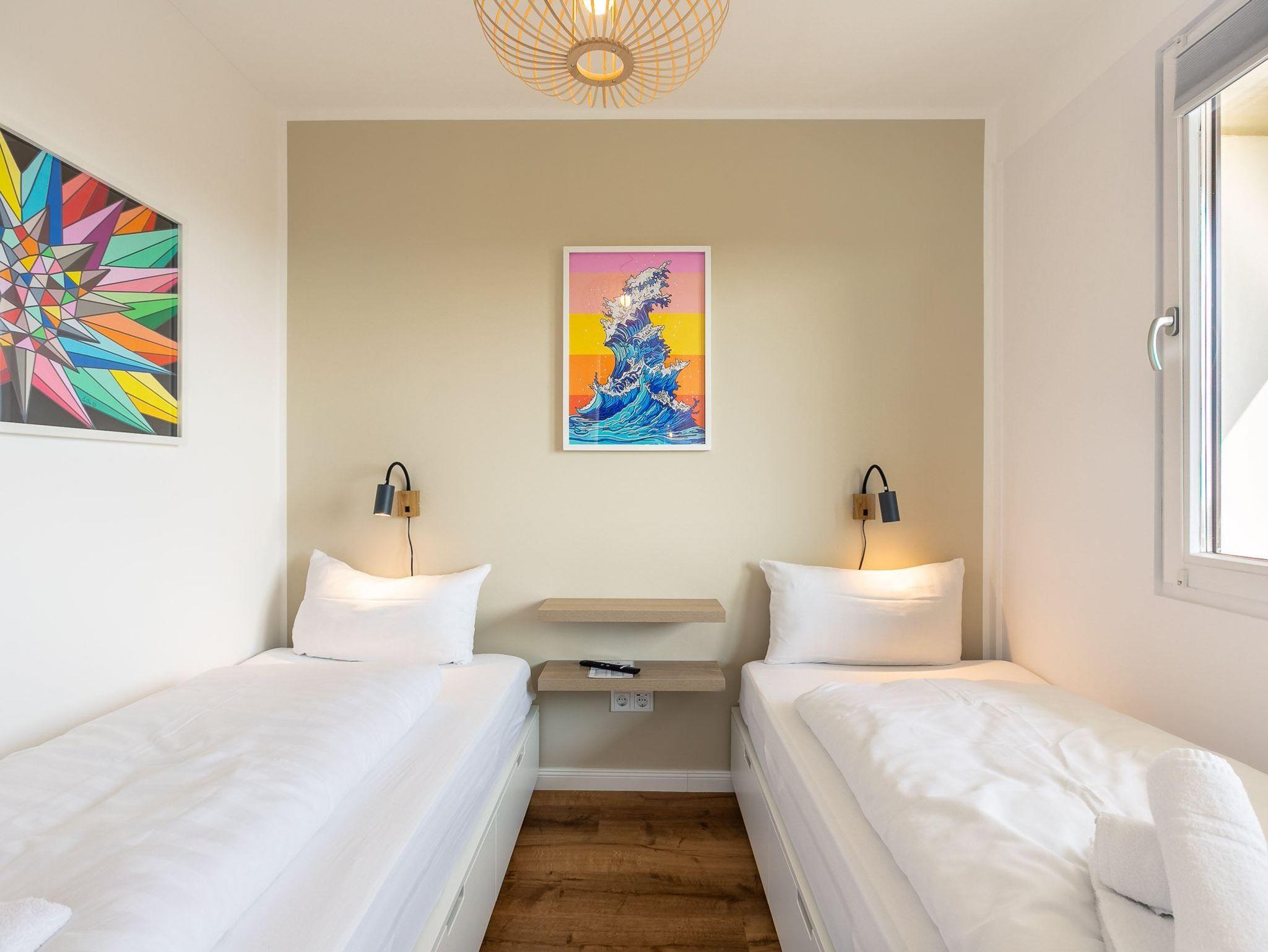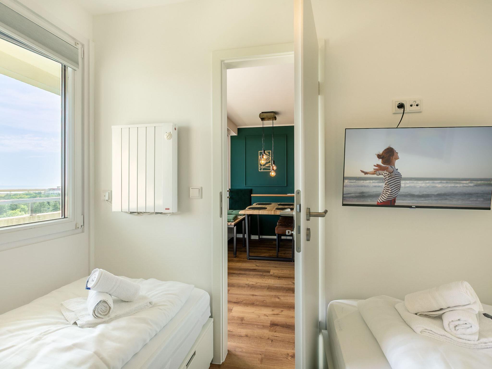 2. Schlafzimmer mit 2 Einzelbetten (je 90x200cm), SMART-TV und phänomenalem Nordseeblick.
