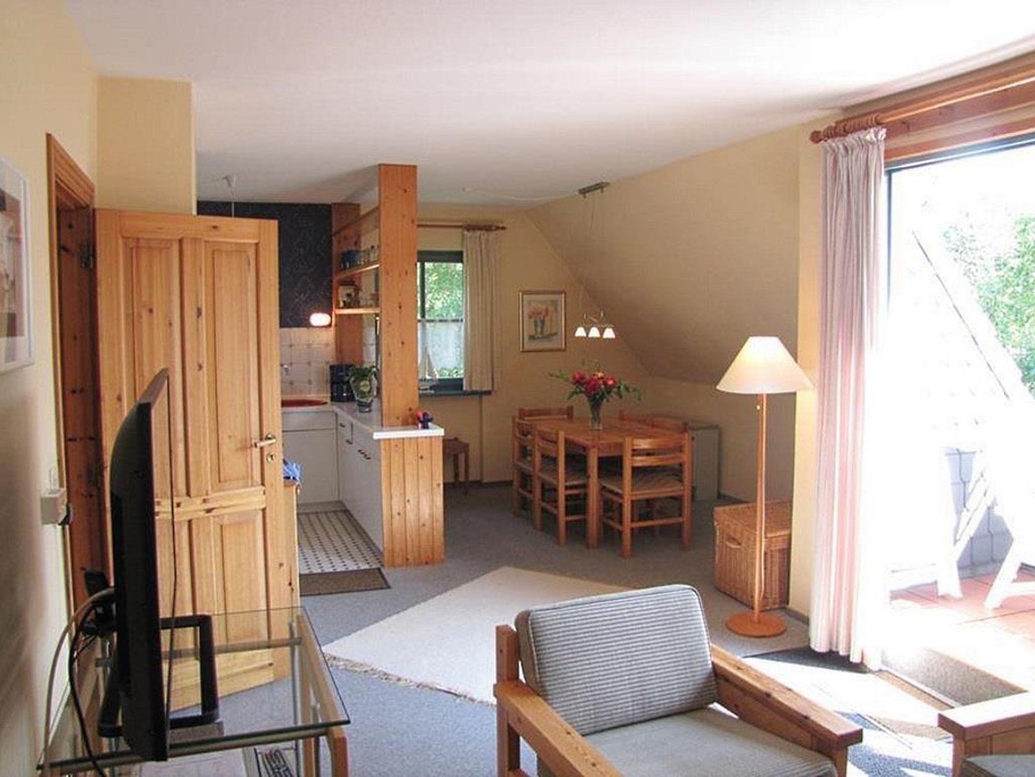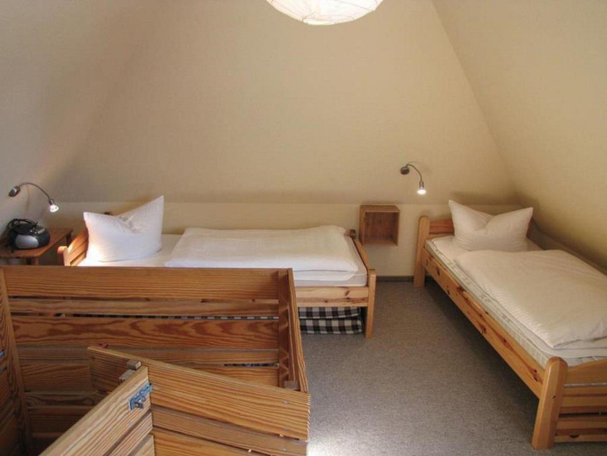 Die Wohnung Anka im Obergeschoß verteilt sich über 2 Etagen auf 85qm. Im Obergeschoß finden Sie einen Wohnschlafraum mit Schlafcouch, Sitz- und Essecke, dänischem Kaminofen, sowie eine sonnige Fensterfront mit Ausgang zum Balkon vor. Die Ferienwohnung ist im skandinavischen Stil mit einer offenen Küche, einem Tresenbereich, Insektenschutzfenstern, einem Duschbad, sowie einem separatem WC ausgestattet. Ein Schlafzimmer mit einem Doppelbett lädt zum Schlummern ein. Ein weiterer Schlafraum mit 3 Einzelbetten und Kindergitter (ein Kinderbett wäre hier zusätzlich aufstellbar), einem Couchtisch und zwei Sesseln ist über die Wendeltreppe im Dachgeschoß erreichbar. Bettwäsche und Handtücher sind auf Anfrage mietbar.
