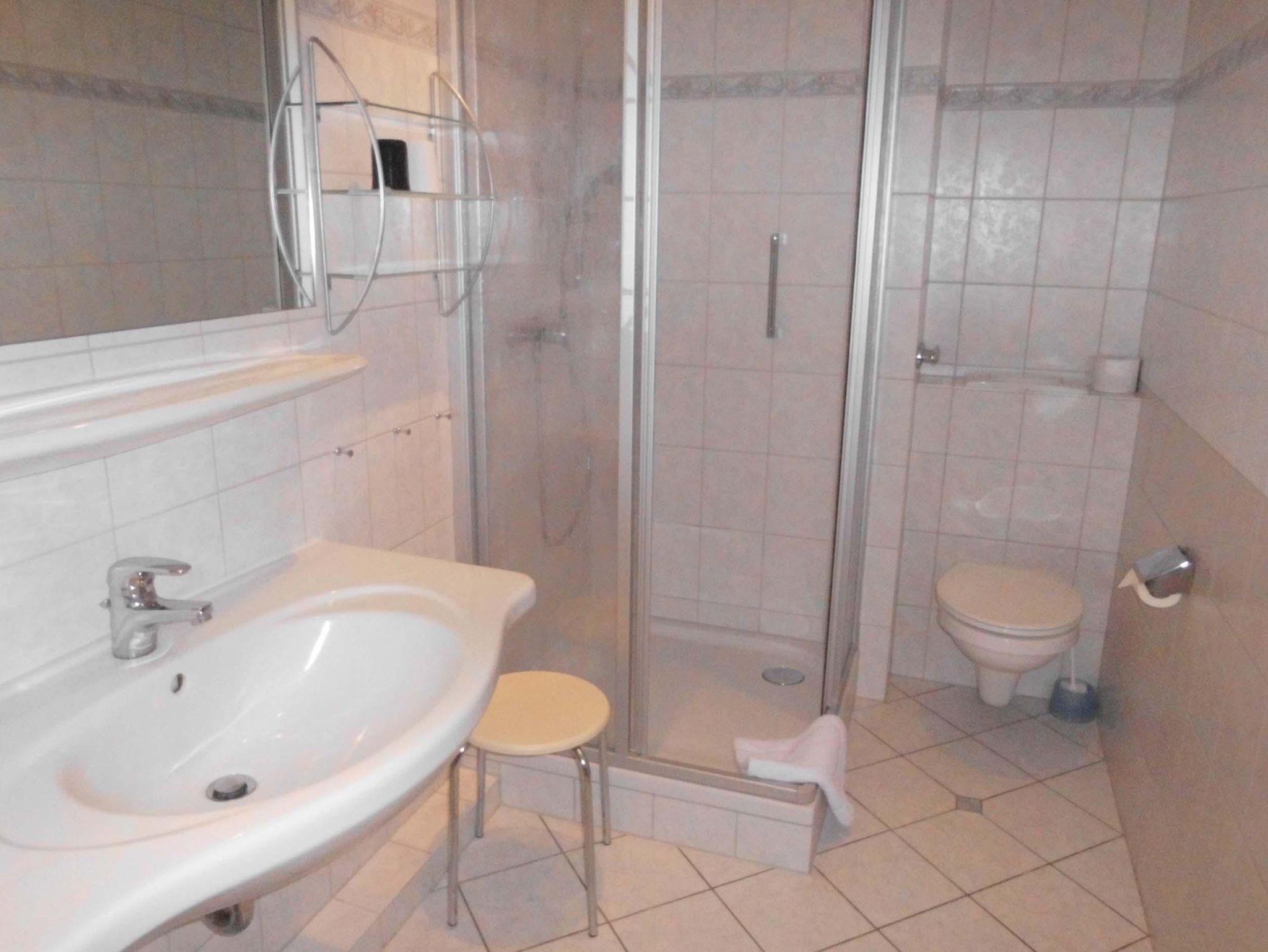 App.-Nr. 62, Typ 2, III. OG, Nord-Westlage Schlafraum mit 2 Einzelbetten, Wohn-Schlafraum mit 2 Wandschrankbetten, Laminatfußboden, Sitzecke, Essecke, Küchenzeile mit Backofen und Mikrowelle, Dusche/WC, Kabel-TV, Durchwahltelefon, Balkon, PKW-Platz-Nr. 62, Aufzug und Fahrradkeller. Rezeption, Brötchenservice, Schwimmbad, Sauna kostenpflichtig, kostenfreier Internetzugang (LAN1-Germania). Bettwäsche wird einmalig bei Einzug gestellt. Handtücher können gegen Gebühr entliehen werden.