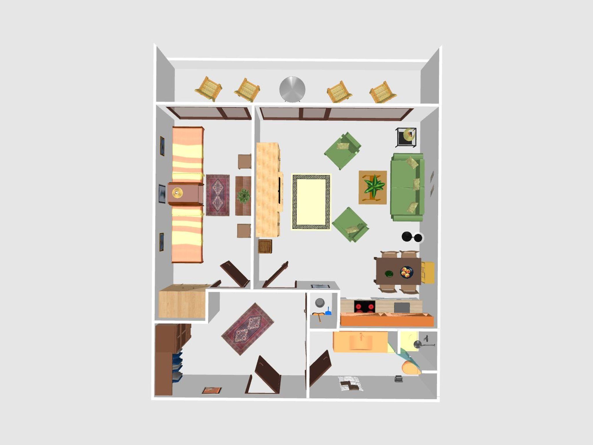 Das Objekt verfügt über ca. 54,0 qm Wohnfläche auf 2 Zimmer verteilt. (1 Wohnzimmer, 1 Schlafzimmer, 1 Badezimmer) 2x Schrankbett, 2x Einzelbett Belegungskapazität Die Unterkunft ist für eine Belegung durch bis zu 4 Personen geeignet.