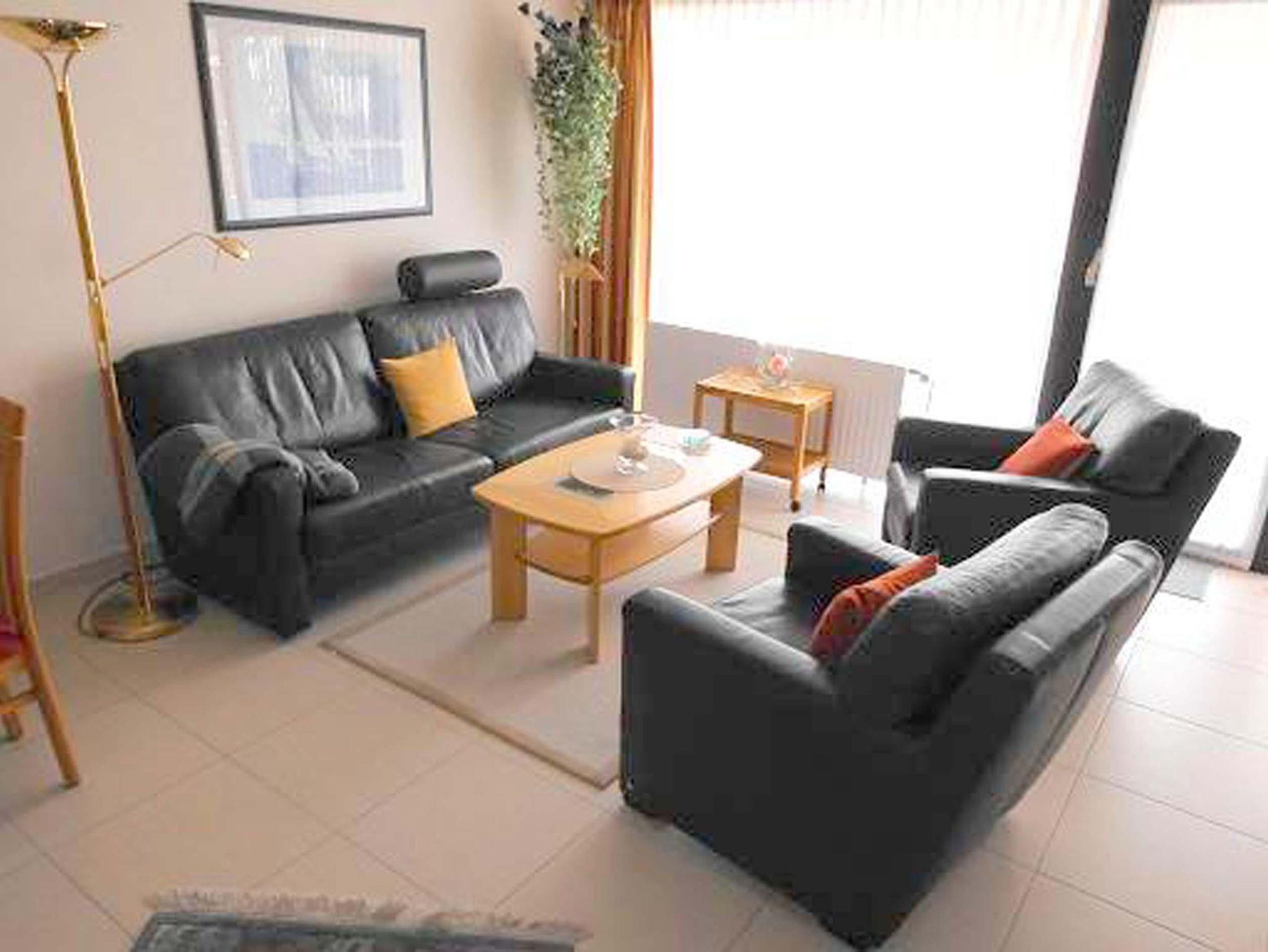 Schlafraum mit 2 Einzelbetten, Wohn-Schlafraum mit 2 Wandschrankbetten, Fußboden gefliest, Sitzecke, Essecke, Küchenzeile mit Mikrowelle und Geschirrspüler, Dusche/WC, Kabel-TV, Durchwahltelefon, Balkon, PKW-Platz-Nr. 35, Aufzug und Fahrradkeller. Rezeption, Brötchenservice, Schwimmbad, Sauna kostenpflichtig, kostenfreier Internetzugang (LAN1-Germania).