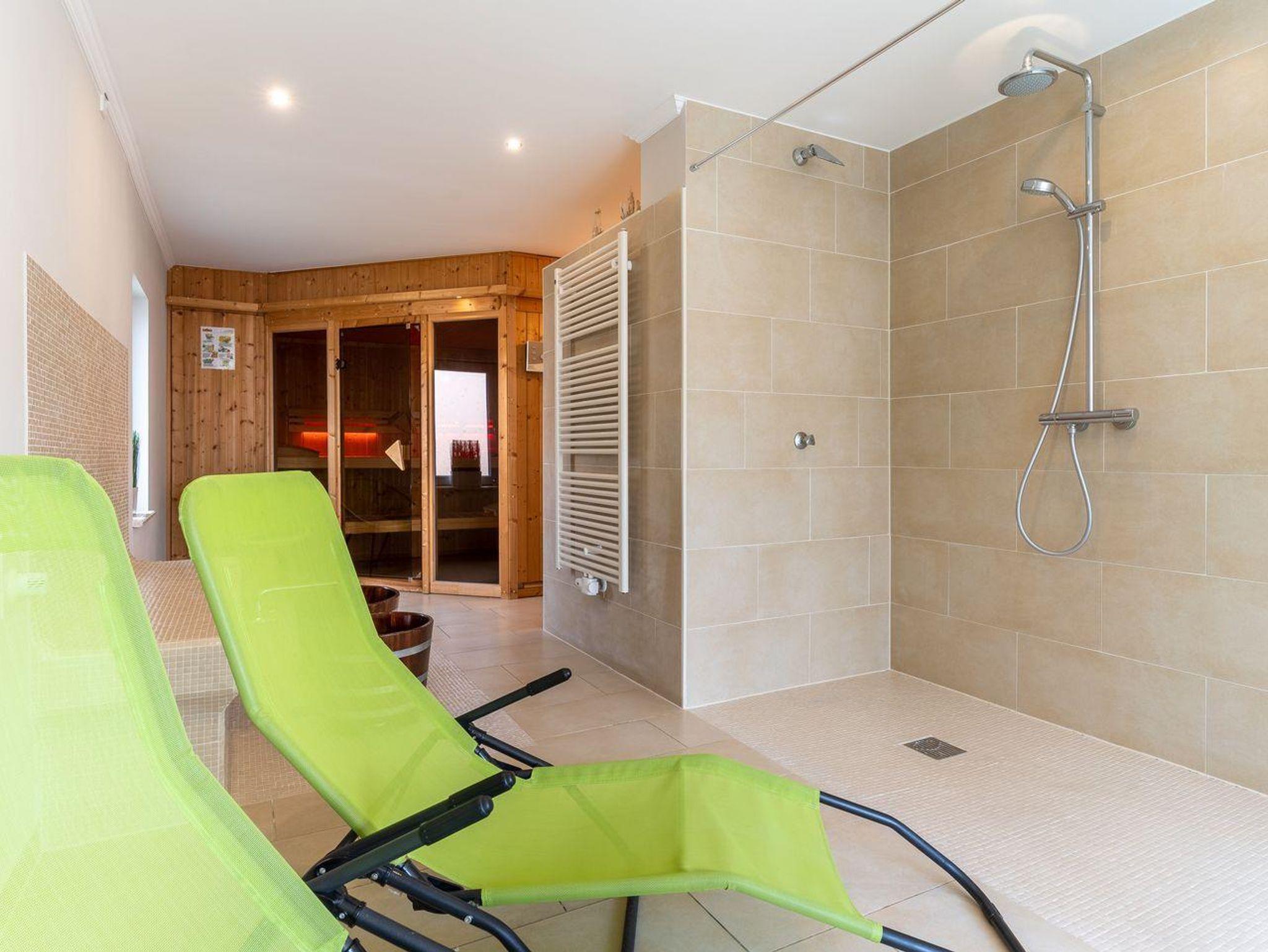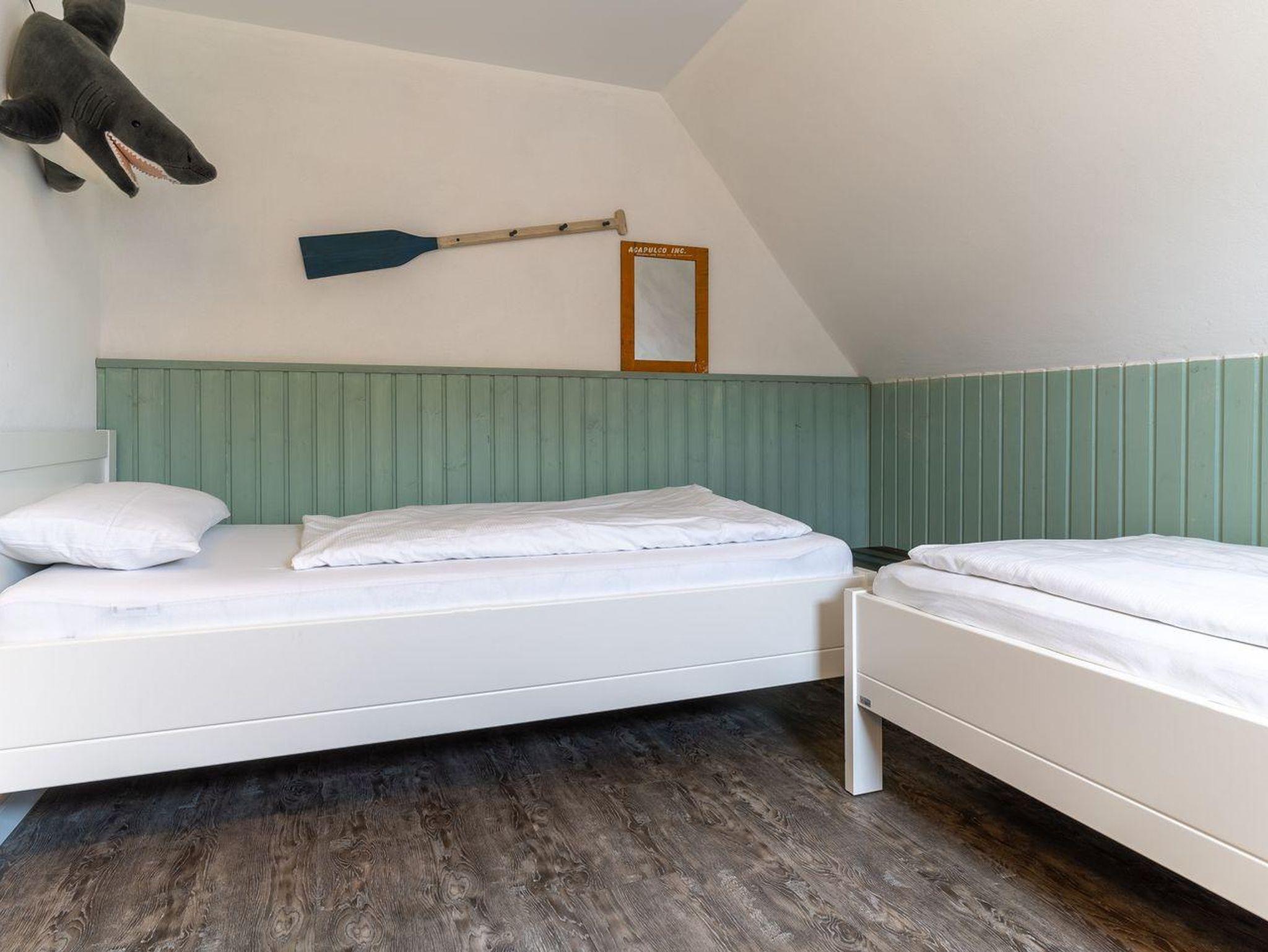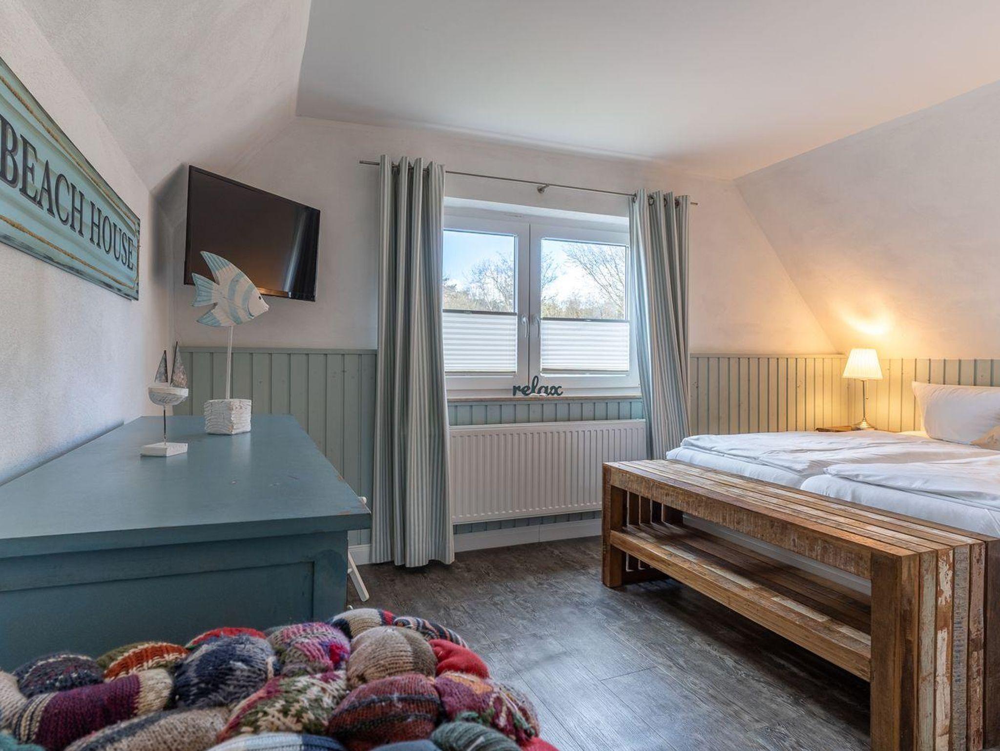 Über einen weiteren Flur gelangen Sie zu dem Doppelschlafzimmer mit Ausziehbett jeweils 2x 80er Matratzen, außerdem einem weiteren Doppelschlafzimmer mit jeweils 2x90er Matratzen und LED TV sowie einem Vollbad. Über eine wunderhübsche Holztreppe gelangt man in das Obergeschoss mit zwei weiteren Schlafzimmern. Eins verfügt über ein Doppelbett mit jeweils 2x 80er Matratzen und LED TV, das andere Schlafzimmer verfügt über 2 Einzelbetten mit je einer 90er Matratze. In einem separaten wunderschönen Anbau lädt der große Wellnessraum mit Sauna, Ruhezone, Dusche, WC und eingezäunter Terrasse zur Erholung ein. Traumhaft schön und einzigartig in SPO! (Nutzbar von 2 Appartements im Haus gegen Gebühr) Carpe Diem!