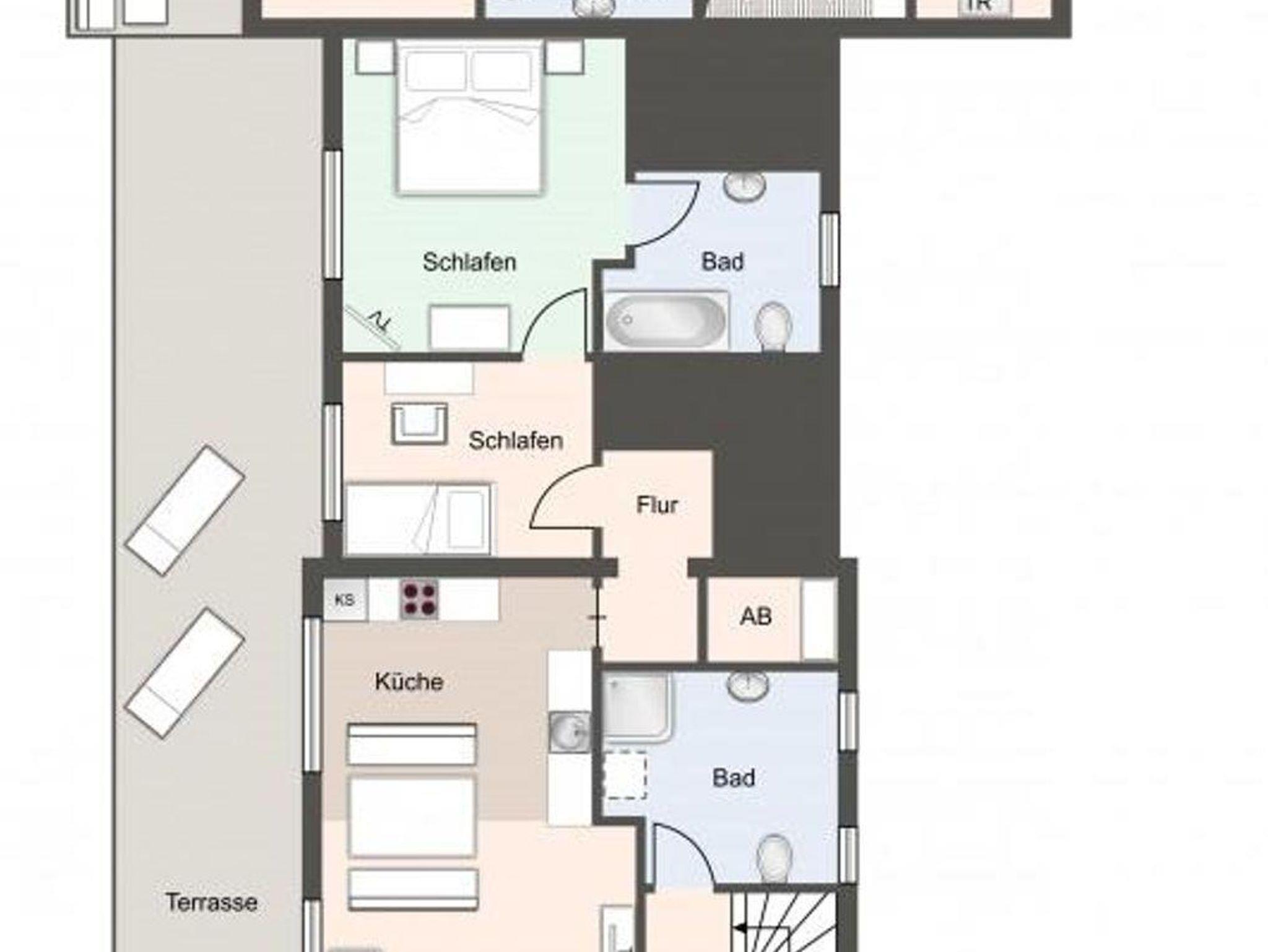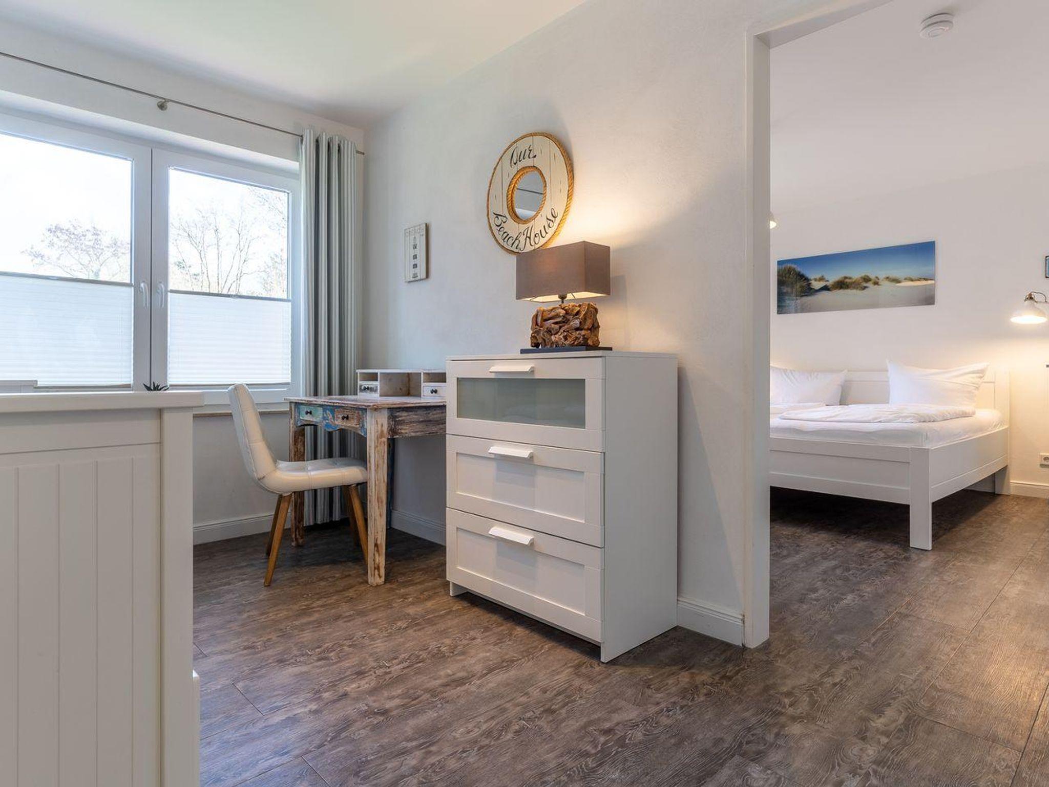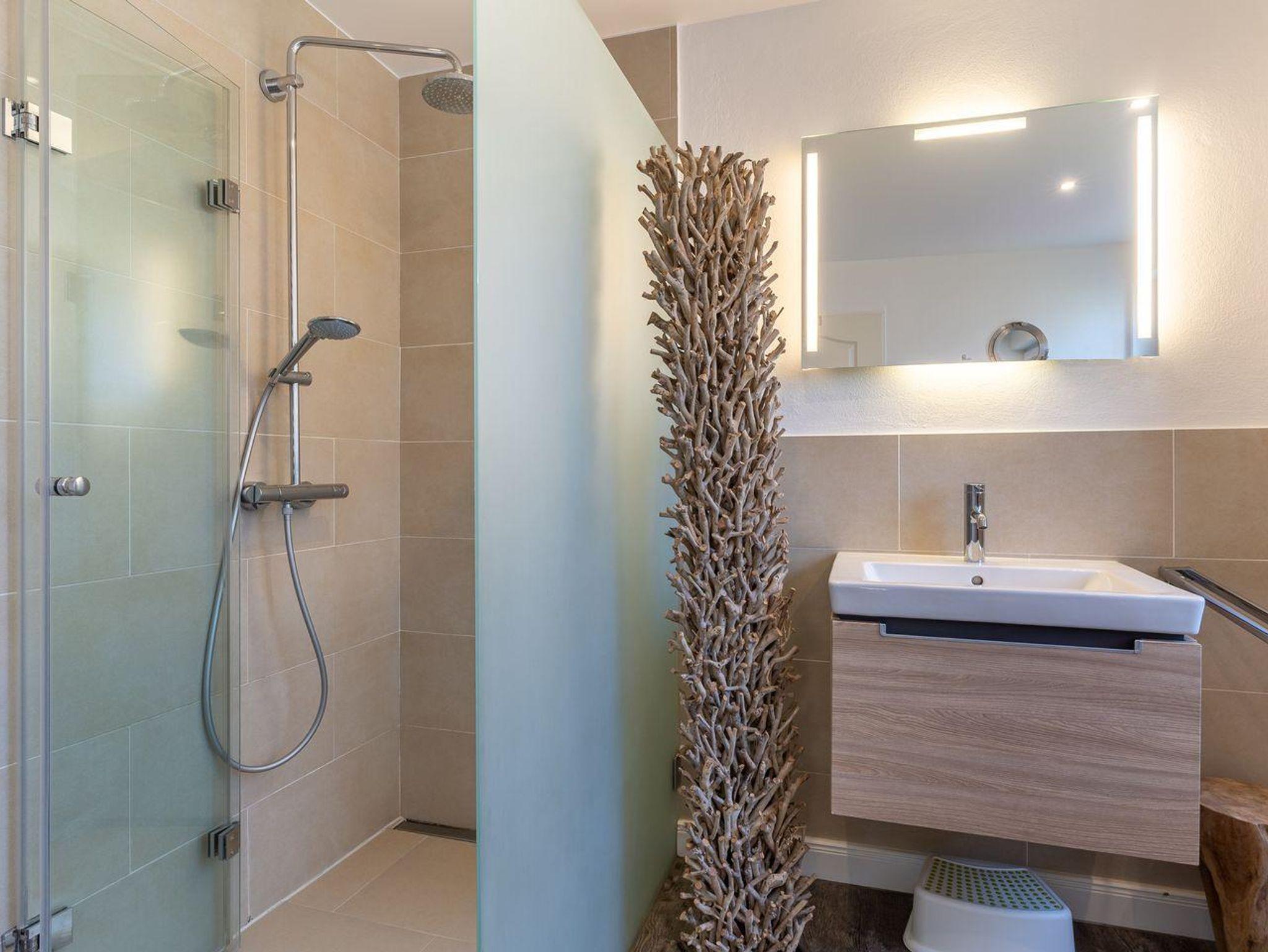 Über einen weiteren Flur gelangen Sie zu dem Doppelschlafzimmer mit Ausziehbett jeweils 2x 80er Matratzen, außerdem einem weiteren Doppelschlafzimmer mit jeweils 2x90er Matratzen und LED TV sowie einem Vollbad. Über eine wunderhübsche Holztreppe gelangt man in das Obergeschoss mit zwei weiteren Schlafzimmern. Eins verfügt über ein Doppelbett mit jeweils 2x 80er Matratzen und LED TV, das andere Schlafzimmer verfügt über 2 Einzelbetten mit je einer 90er Matratze. In einem separaten wunderschönen Anbau lädt der große Wellnessraum mit Sauna, Ruhezone, Dusche, WC und eingezäunter Terrasse zur Erholung ein. Traumhaft schön und einzigartig in SPO! (Nutzbar von 2 Appartements im Haus gegen Gebühr) Carpe Diem!