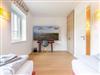 2. Schlafzimmer mit zwei Einzelbetten (je 90x195 cm), Schreibtisch, Kleiderschrank und großem SMART-TV.