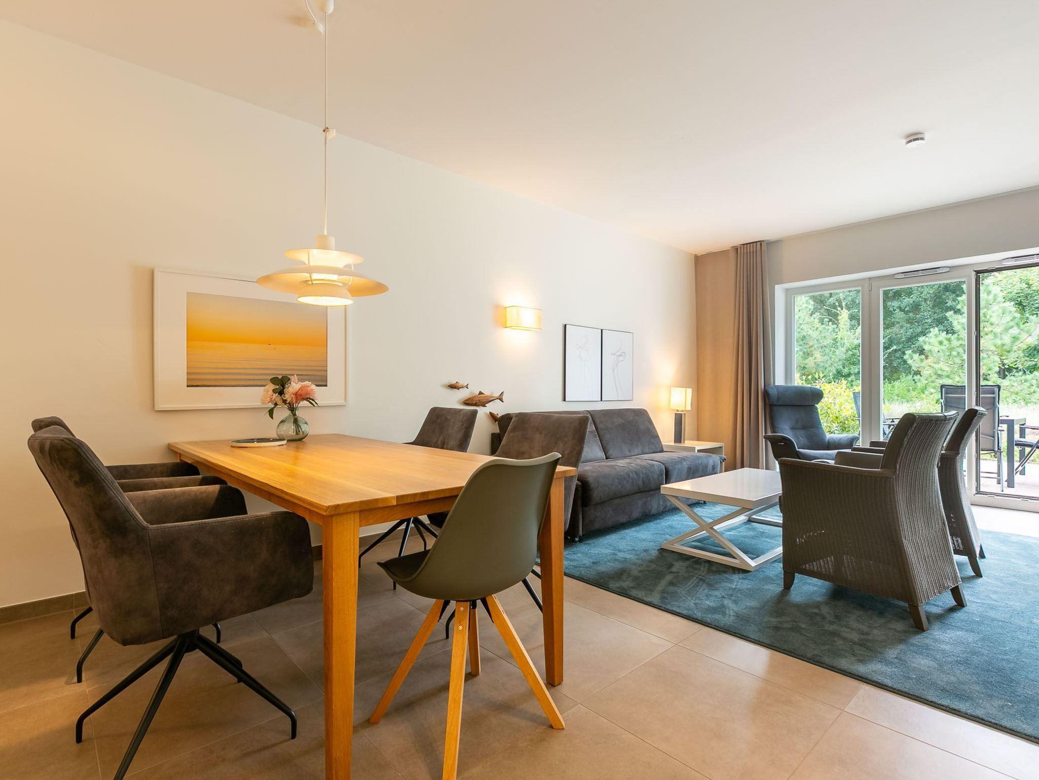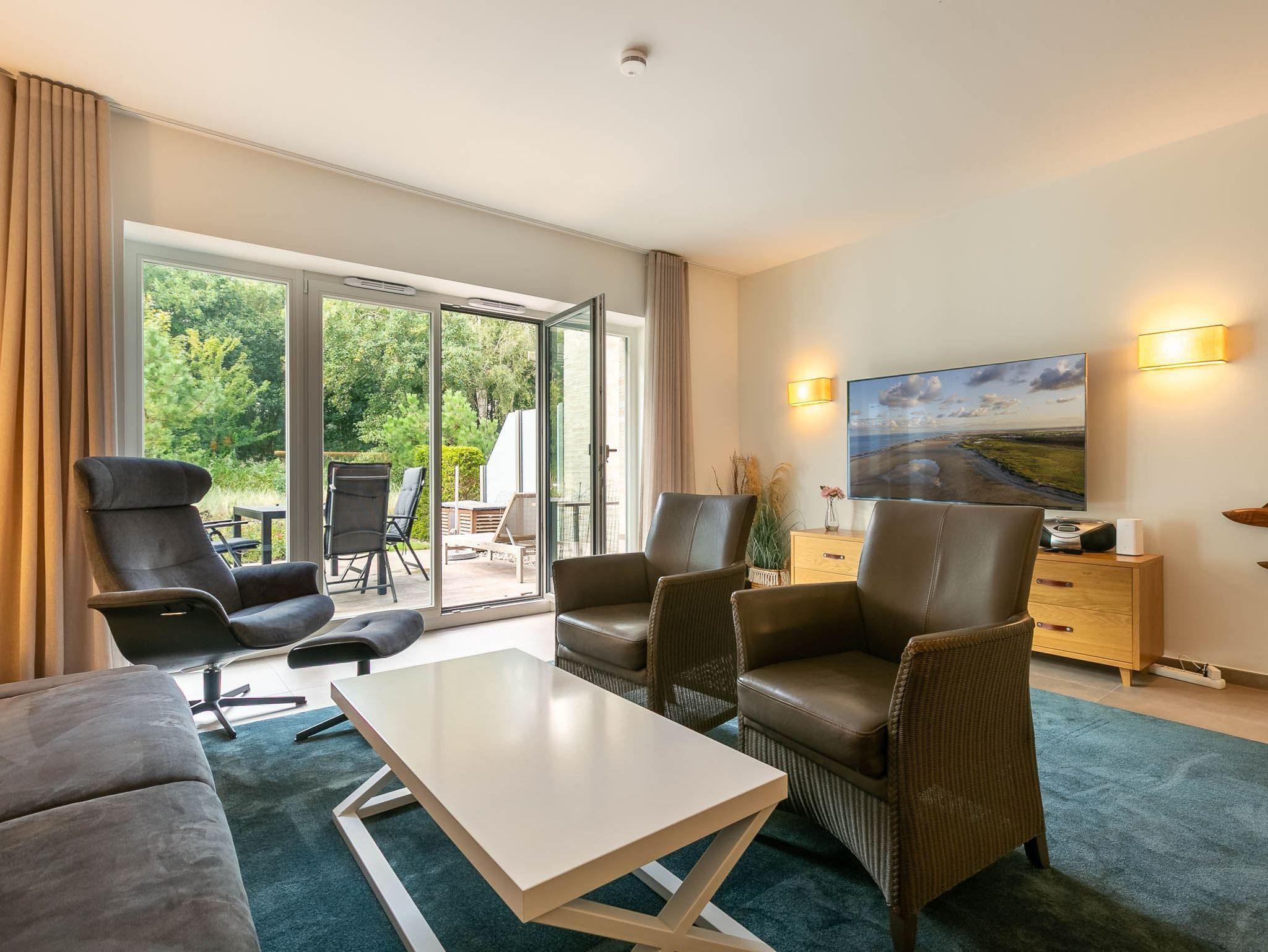 Exklusiver Mittelhausteil 2 O ? Residenz am Wald? in der Ferienanlage ?Aalernhüs Residenzen? mit 3 Zimmern und ca. 127 m² auf 2 Ebenen (EG, OG) für bis zu 6 Personen (Wohlfühlbelegung: max. 4 Erwachsene). Ruhige Lage im Ortsteil Bad in St. Peter-Ording. Das Domizil liegt auf dem Anwesen einer 5-Sterne-Hotelanlage, deren Wellnessbereich mit Saunen, Innen- und Außenschwimmbädern, Fitnessraum und Tennisanlage gegen Gebühr genutzt werden kann. Hunde sind willkommen.