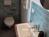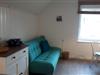 Über ein paar Stufen gelangt man in die Wohnküche und das daran angrenzende Duschbad. In der Wohnküche steht eine Sofaliege für eine dritte Person.