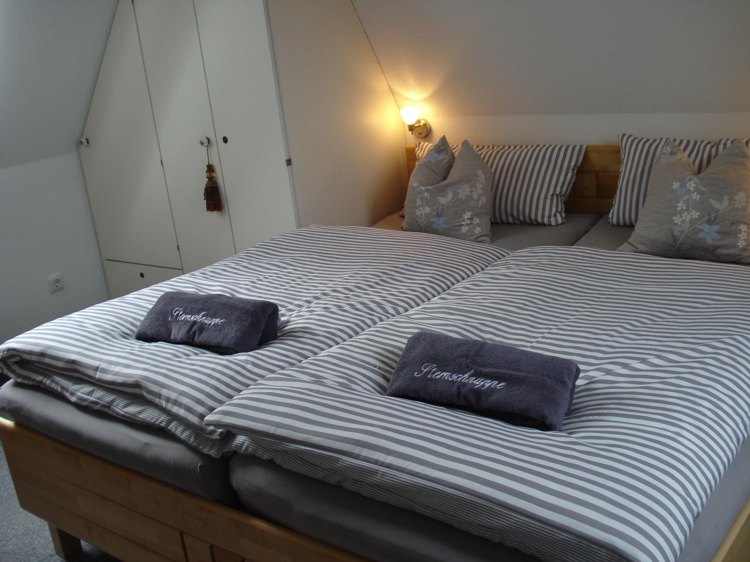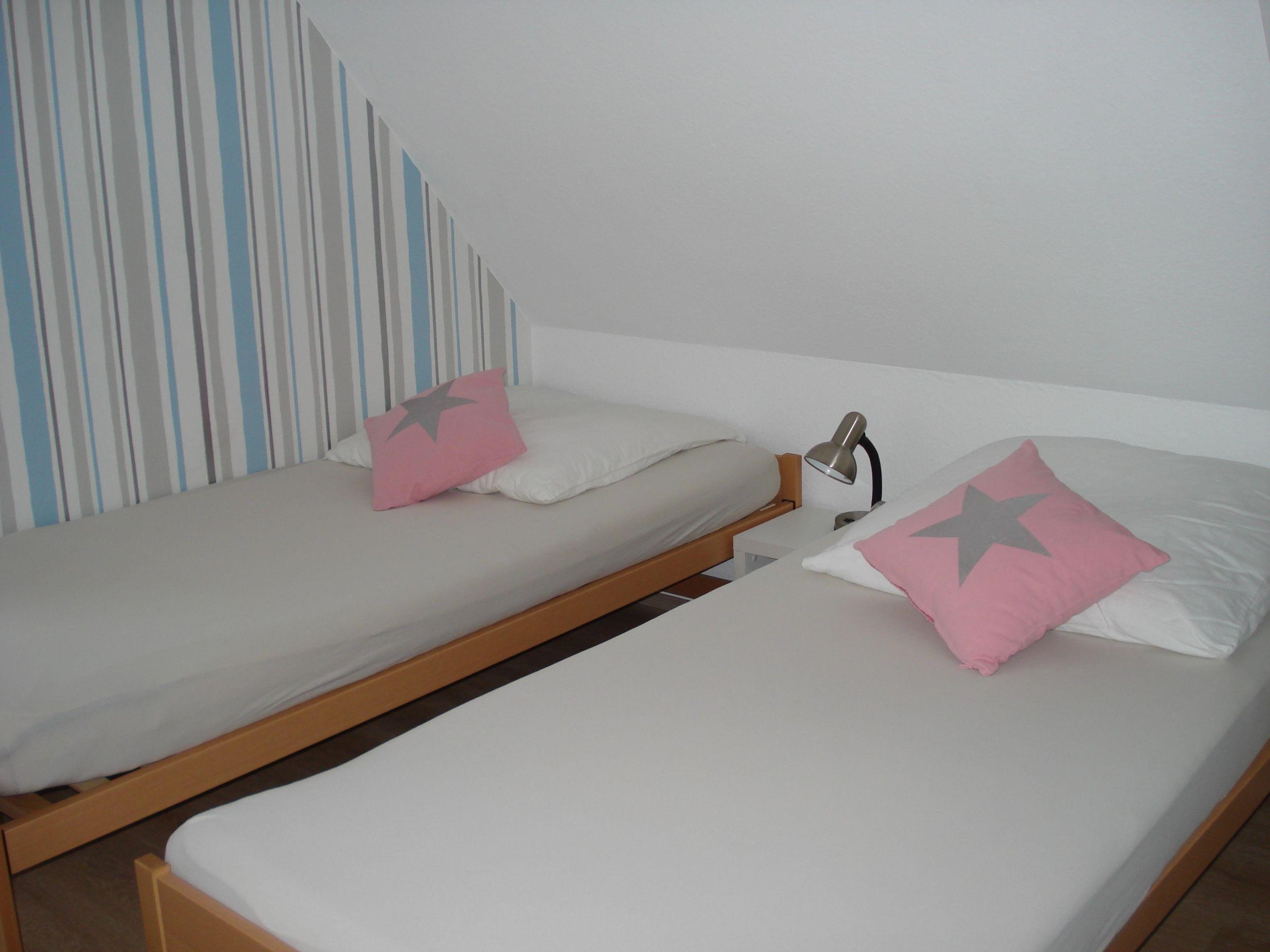 2 Einzelbetten mit Bettwäsche