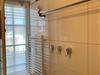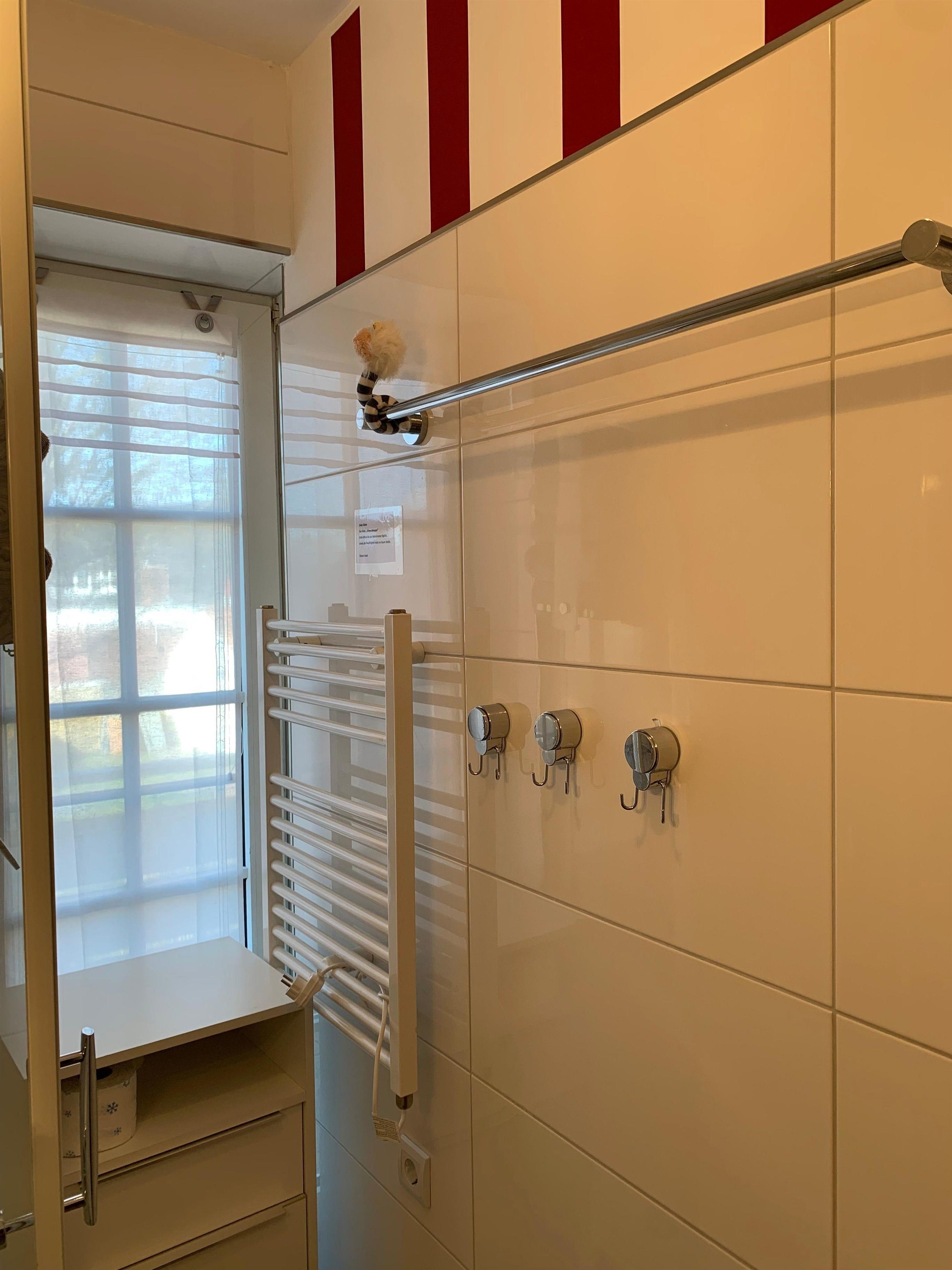 Ebenerdiges Tageslicht-Duschbad mit Fenster. Fußbodenheizung im Winter