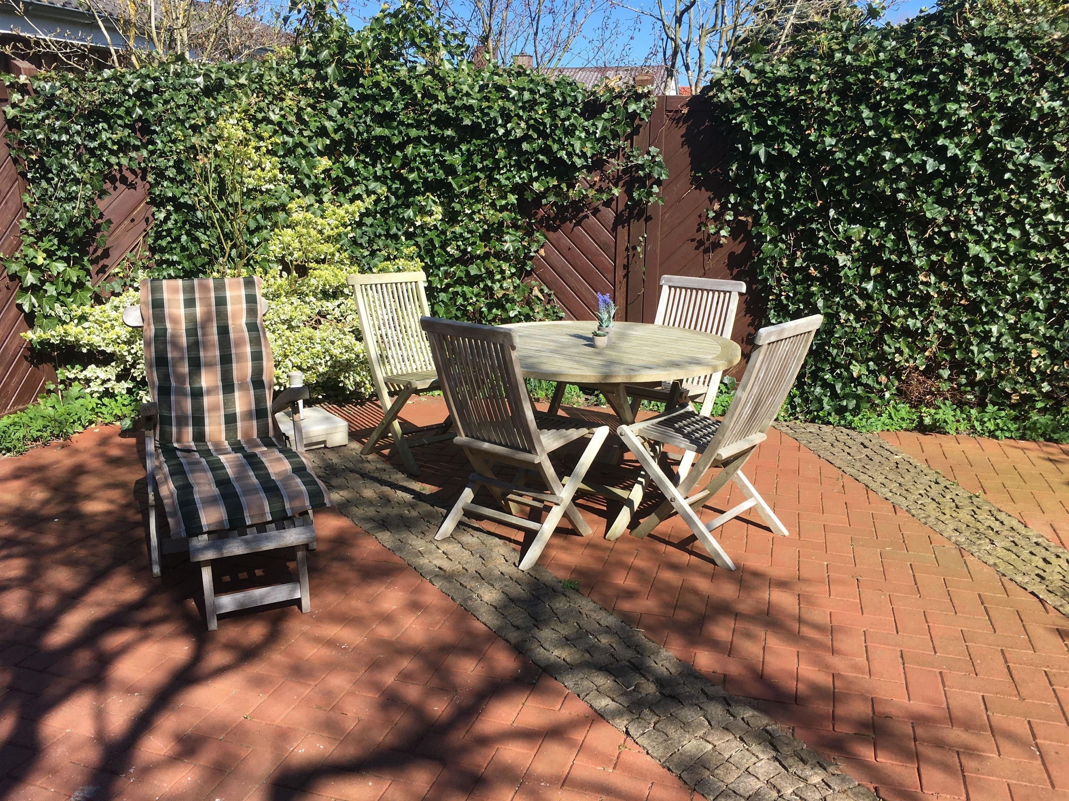 eigener Parkplatz, eigene Terrasse mit Teakmöbeln, Deckchairs