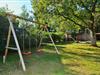Auf der Terrasse befinden sich Gartenmöbel und ein Strandkorb, zudem gibt es einen kleinen Gemeinschaftsspielplatz im Außenbereich.