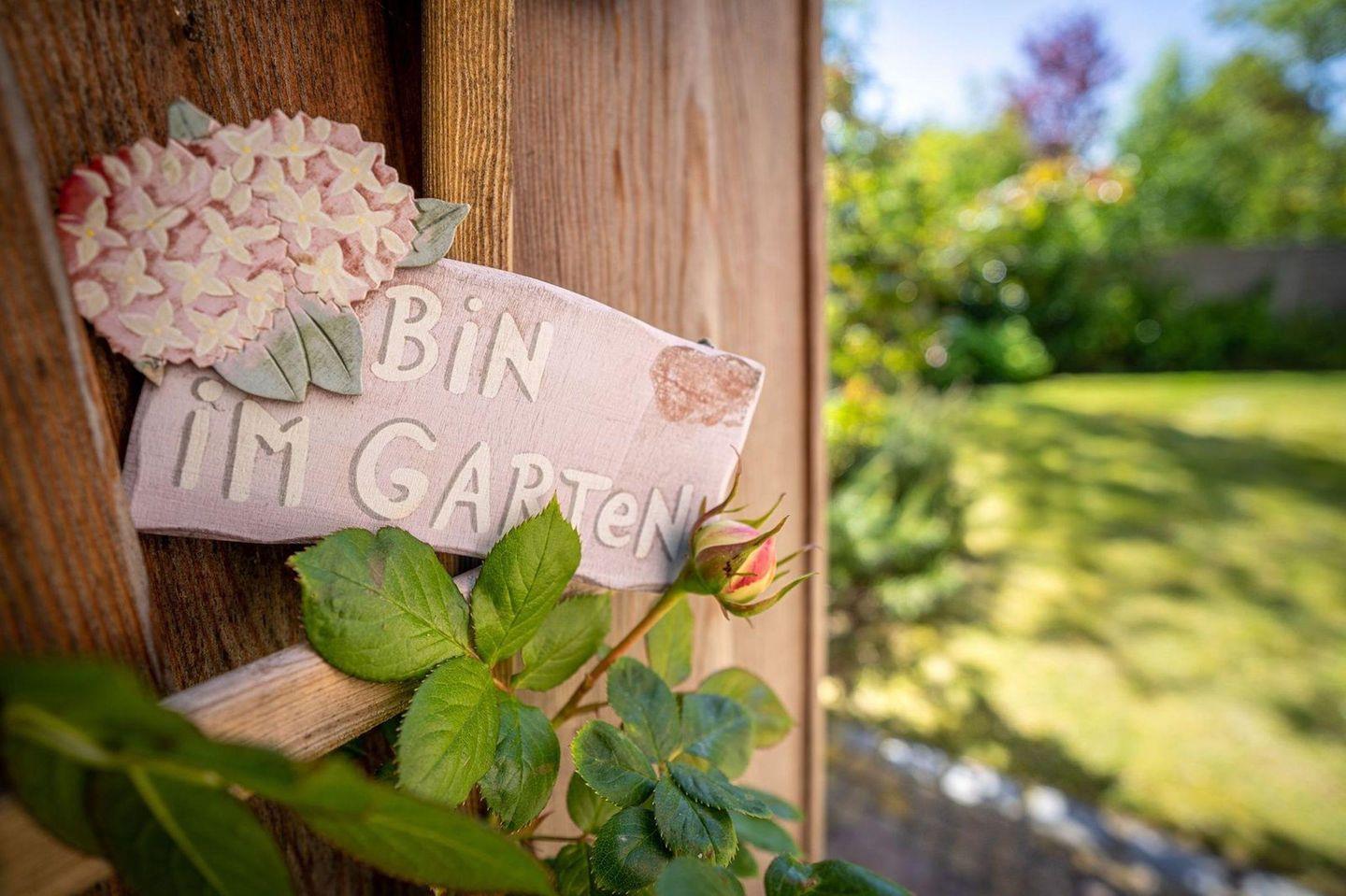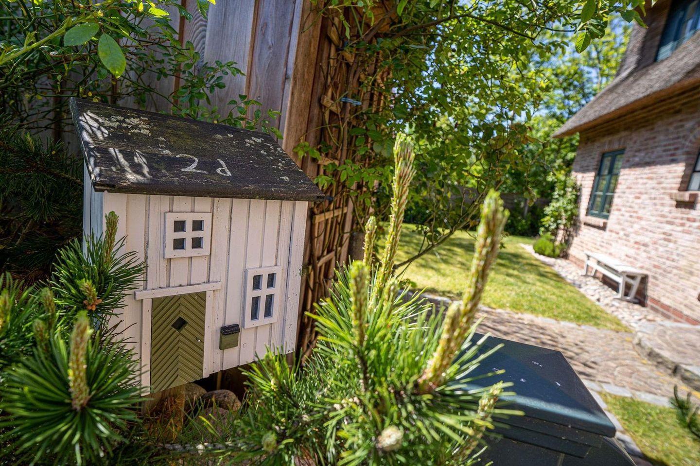 Das Grundstück mit Stellplatz, Rasenfläche und 2 geschützten, sonnigen Terrassen ist mit heimischen Pflanzen und einem Friesenwall angelegt.