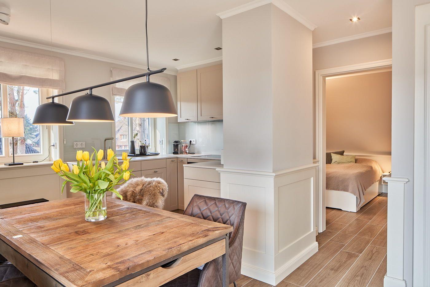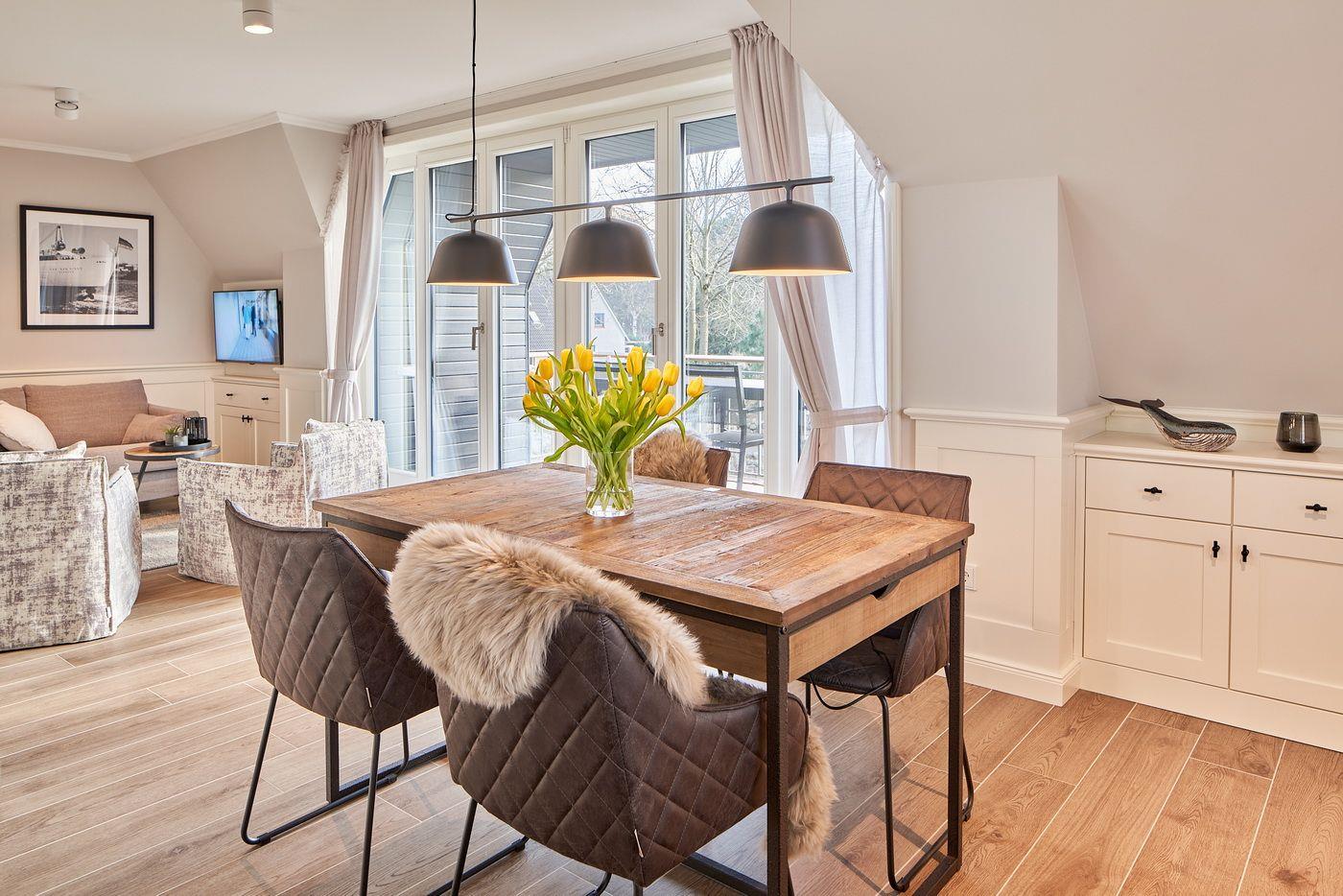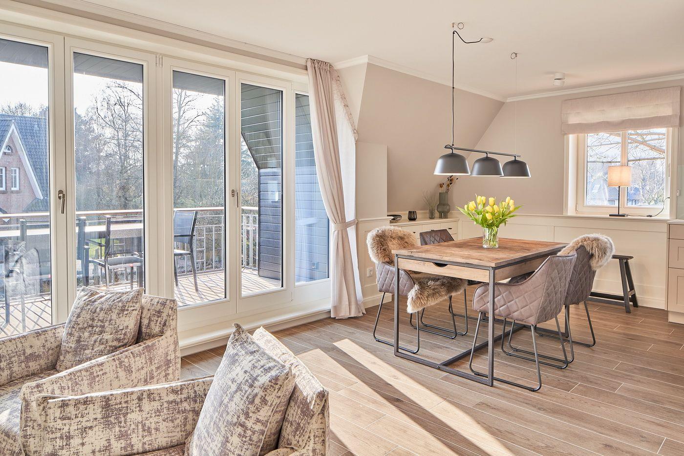 Das Appartement LYKKE 4 befindet sich im Obergeschoss, eines 2021 neu erbauten Reetdachhauses am Waldrand, welches insgesamt 4 Wohneinheiten umfasst. Sie suchen einen Ort an dem Sie gemeinsam Urlaub machen können und doch jeder seinen Bereich hat?! Hier haben Sie den perfekten Ort gefunden! Das angrenzende Wäldchen führt Sie auf direktem Wege mitten ins Zentrum des Ortsteils Bad, in dem Sie neben vielen Restaurants und Einkaufsmöglichkeiten auch die Dünentherme vorfinden. Das Appartement selbst überzeugt mit seinem klaren Stil und lädt durch die exklusive Ausstattung zum Verweilen ein.