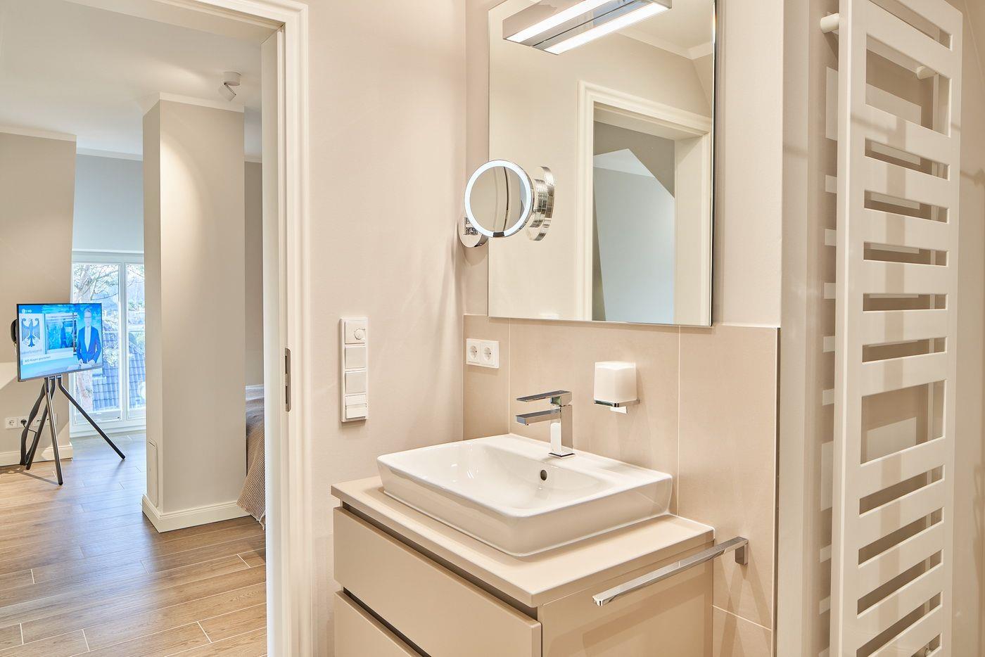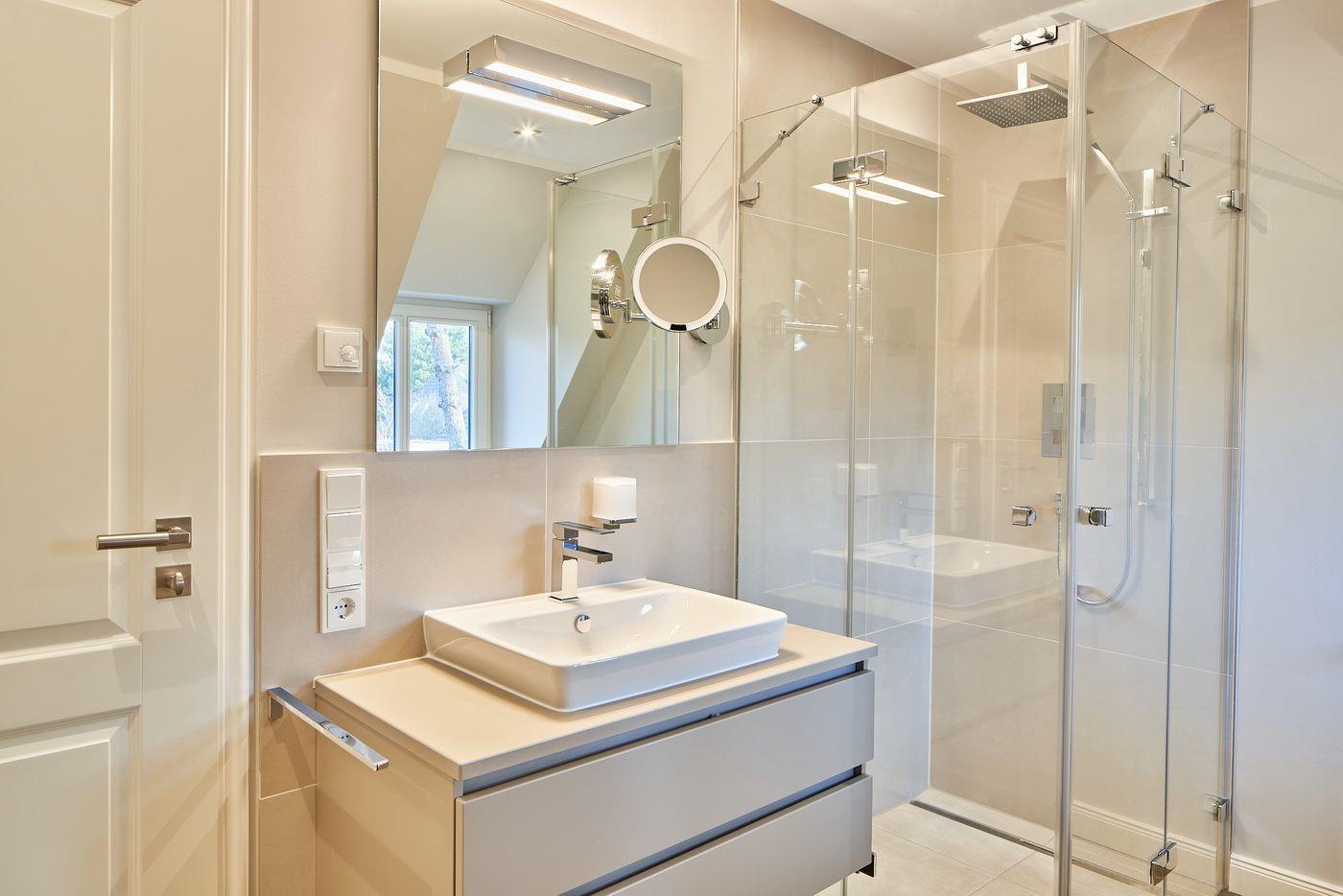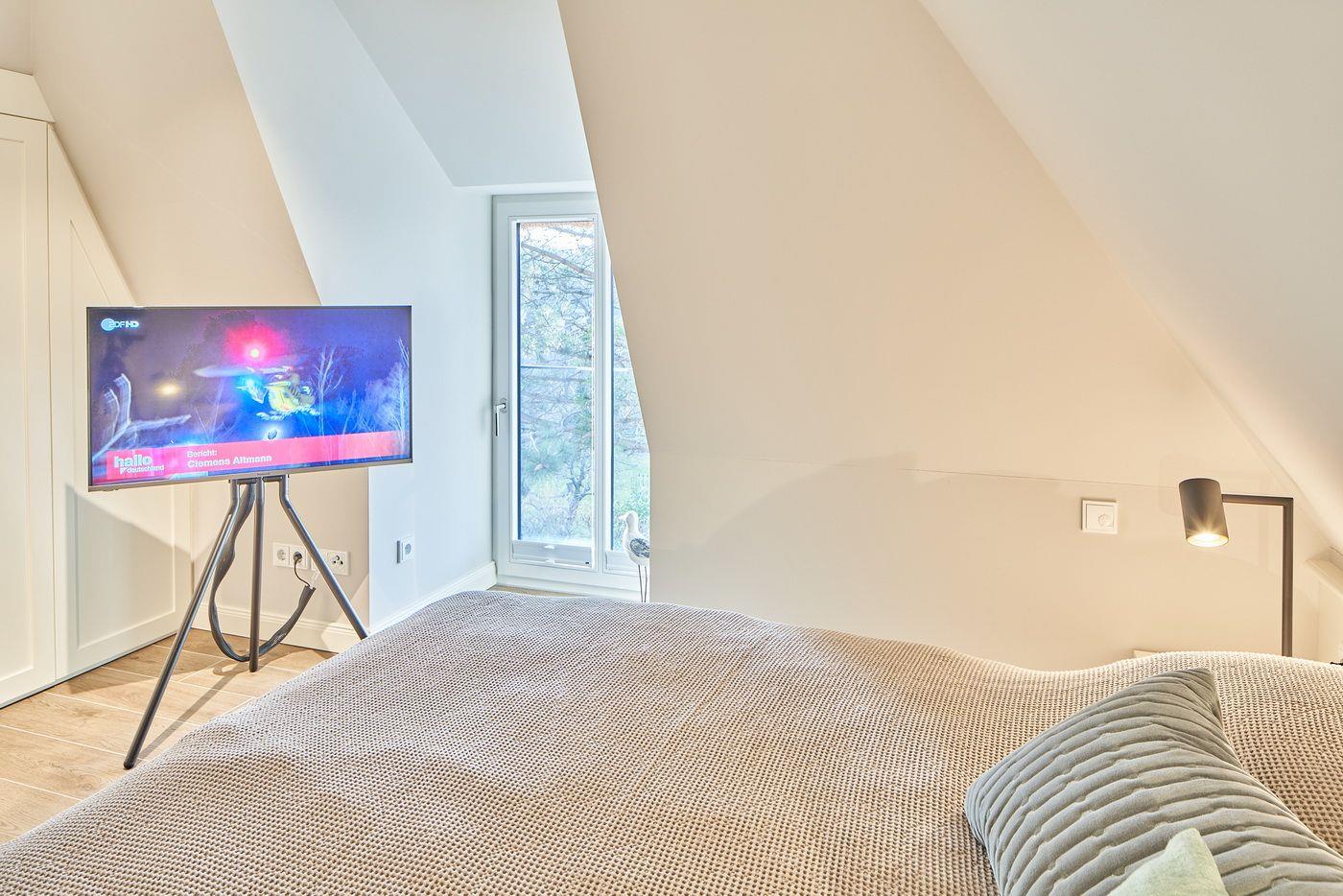 Das Appartement LYKKE 4 befindet sich im Obergeschoss, eines 2021 neu erbauten Reetdachhauses am Waldrand, welches insgesamt 4 Wohneinheiten umfasst. Sie suchen einen Ort an dem Sie gemeinsam Urlaub machen können und doch jeder seinen Bereich hat?! Hier haben Sie den perfekten Ort gefunden! Das angrenzende Wäldchen führt Sie auf direktem Wege mitten ins Zentrum des Ortsteils Bad, in dem Sie neben vielen Restaurants und Einkaufsmöglichkeiten auch die Dünentherme vorfinden. Das Appartement selbst überzeugt mit seinem klaren Stil und lädt durch die exklusive Ausstattung zum Verweilen ein.