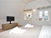 Obergeschoss: eine Galerie, 2 Schlafzimmer mit Doppelbett (jeweils 180 x 200 cm - Einzelmatratzen) und TV, ein Wannenbad mit separater Dusche
