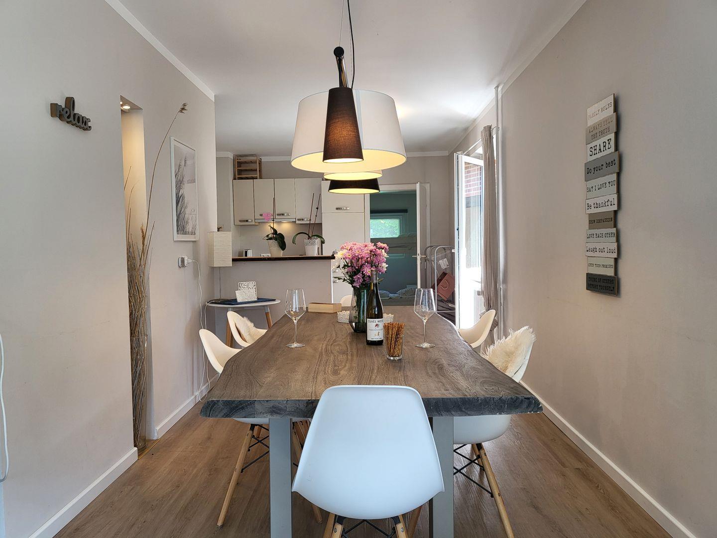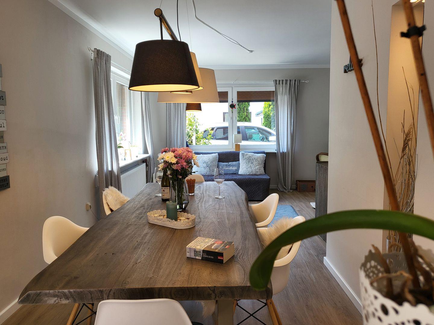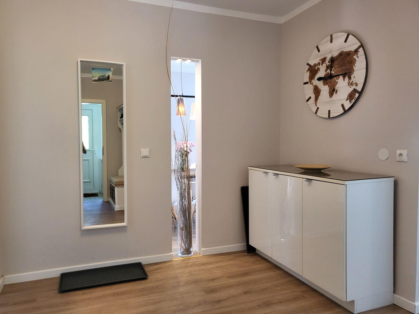 Die Wohnung 5 im Erdgeschoss ist die größte Wohnung vom Haus Windjammer. Mit 100qm ist es sehr großzügig aufgeteilt und bietet viel Platz. Wohnzimmer, Essbereich und Küche sind offen gestaltet und gehen ineinander über.