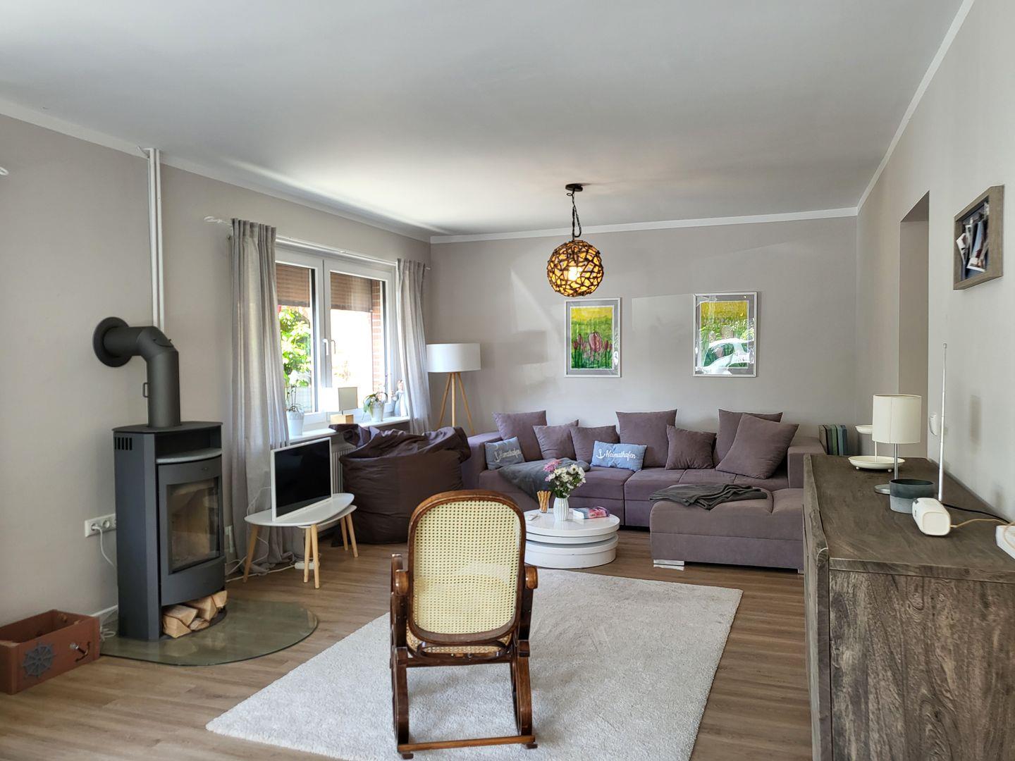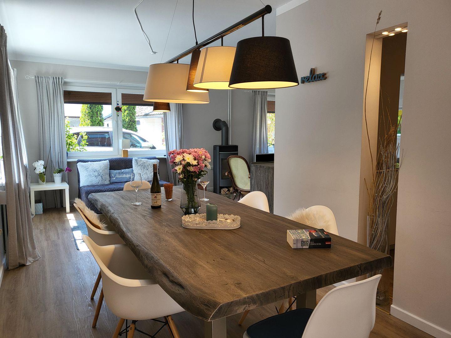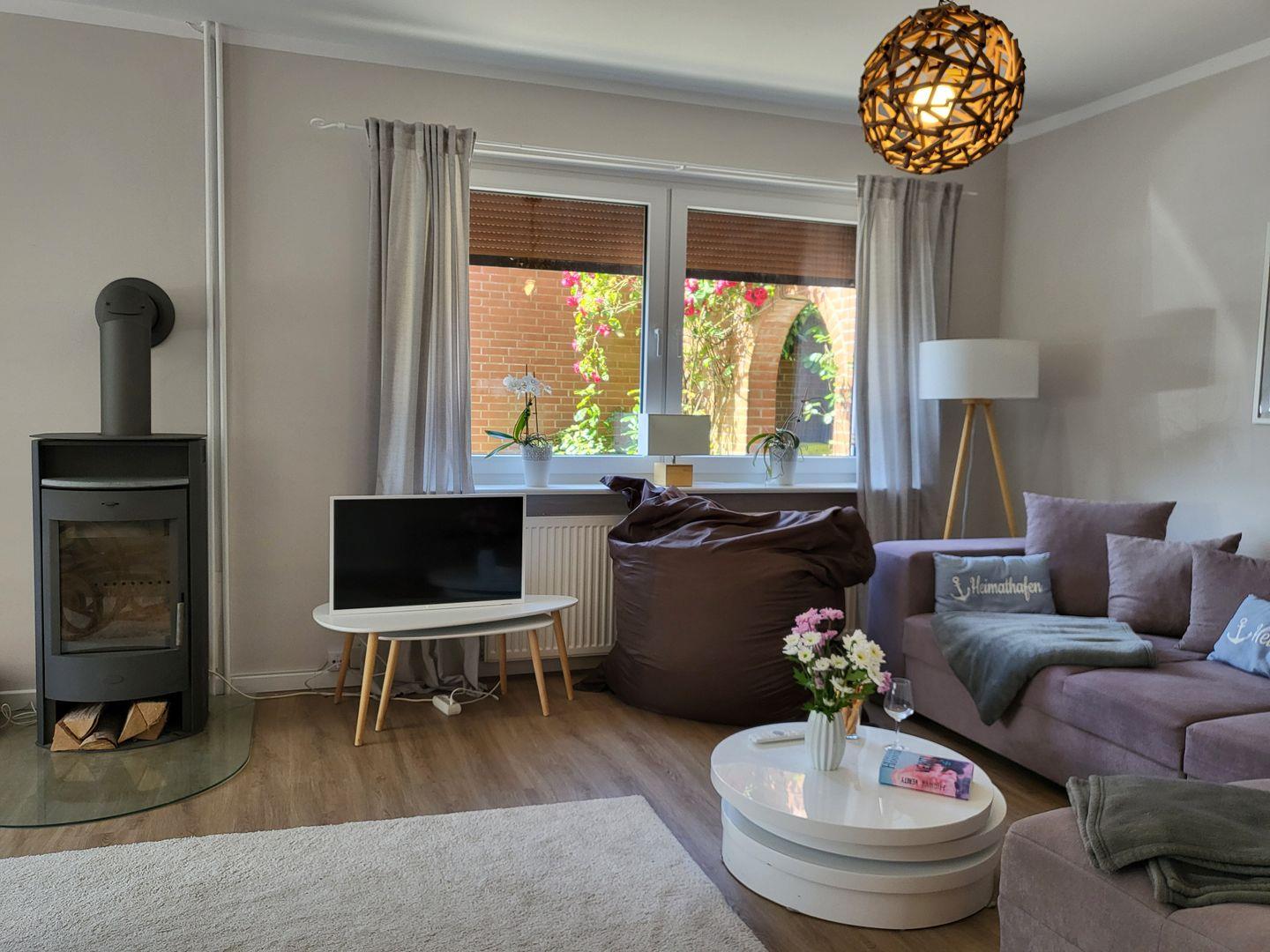 Der Kaminofen im Wohnzimmer lädt ein, einen gemütlichen Abend mit einem Glas Wein zu genießen. Wer kein Buch zur Hand hat kann es sich auch mit dem 50 Zoll Fernseher gemütlich machen. Wer technisch einigermaßen versiert ist und seinen Laptop dabei hat kann mit dem hauseigenen Beamer und der JBL Box das Wohnzimmer auch zu einem Heimkino verwandeln.
