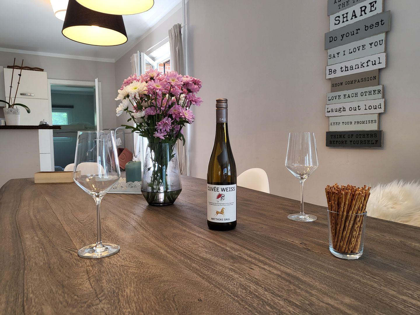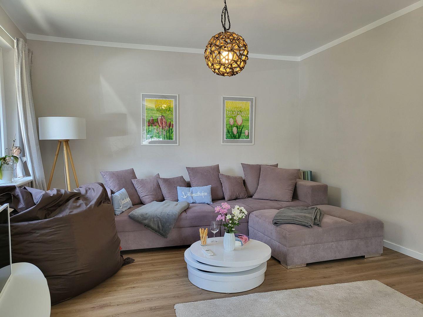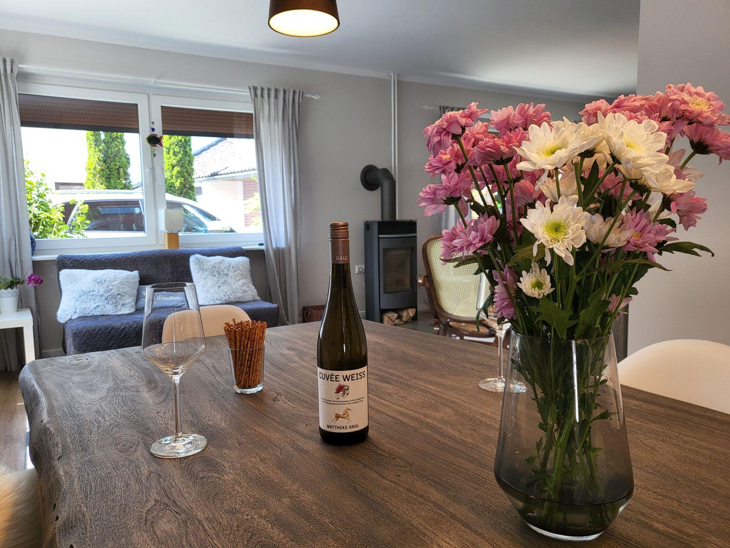 Der Kaminofen im Wohnzimmer lädt ein, einen gemütlichen Abend mit einem Glas Wein zu genießen. Wer kein Buch zur Hand hat kann es sich auch mit dem 50 Zoll Fernseher gemütlich machen. Wer technisch einigermaßen versiert ist und seinen Laptop dabei hat kann mit dem hauseigenen Beamer und der JBL Box das Wohnzimmer auch zu einem Heimkino verwandeln.
