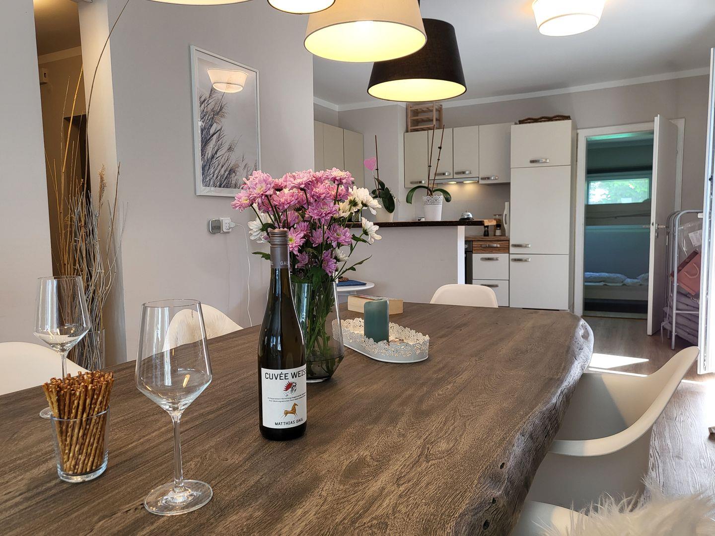 Hier noch die Eckdaten zusammengefasst: TV, WLAN, Nichtraucher, keine Tiere in dieser Wohnung, PKW-Stellplatz, Fahrradabstellplatz, Gasgrill, Backofen, große Küche mit vielen Kochmöglichkeiten, Beamer