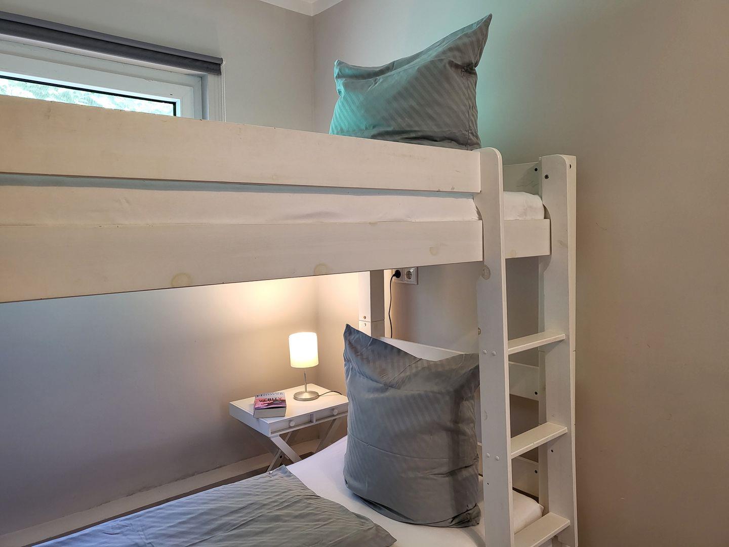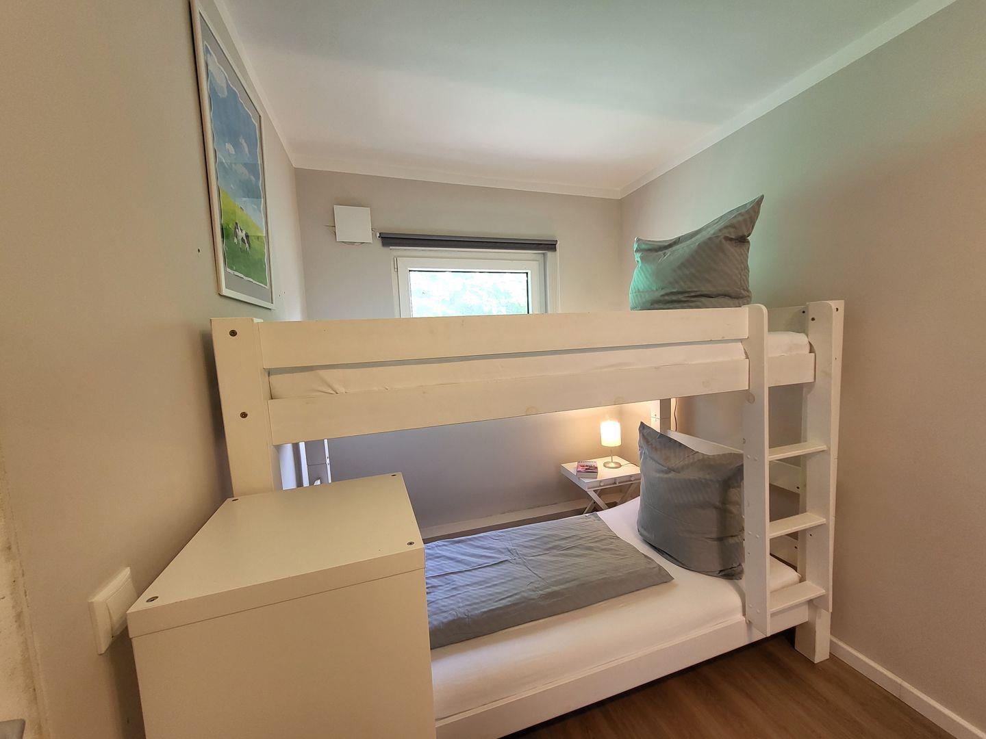 Angrenzend zum Schlafzimmer sind ein Etagenbett mit zwei Schlafmöglichkeiten (90x 200 cm) vorhanden.