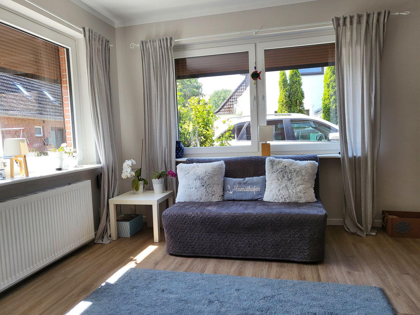 Wer nicht mit 2 Personen in einem Zimmer schlafen möchte kann sich gerne die 140 cm Schlafcouch als zweites Schlafzimmer herrichten.