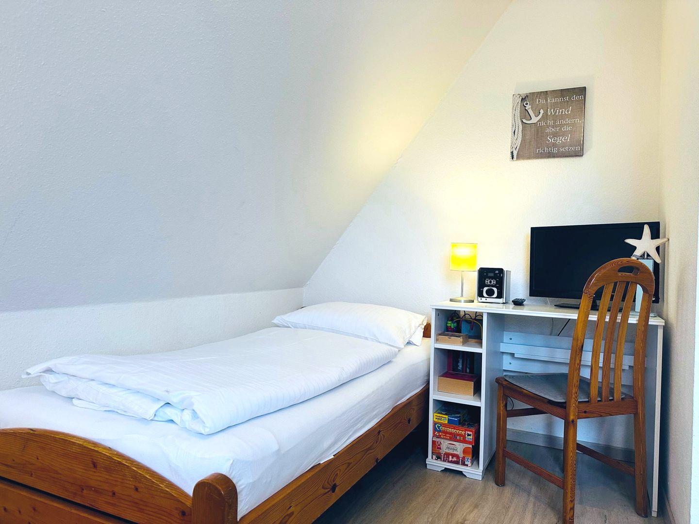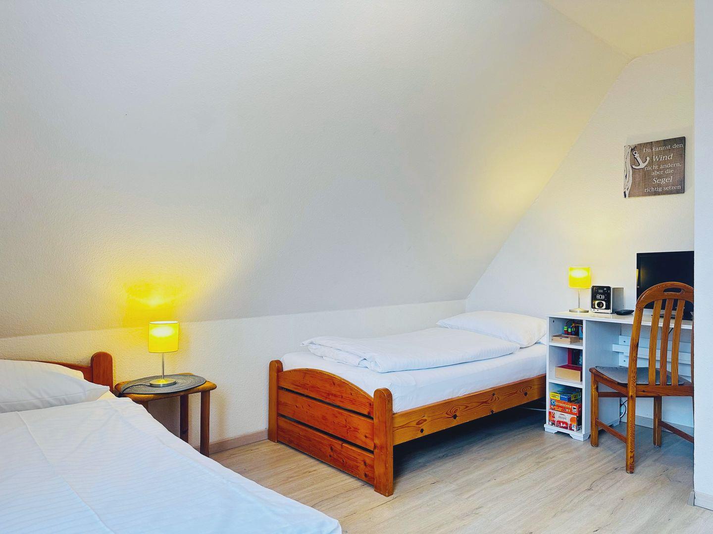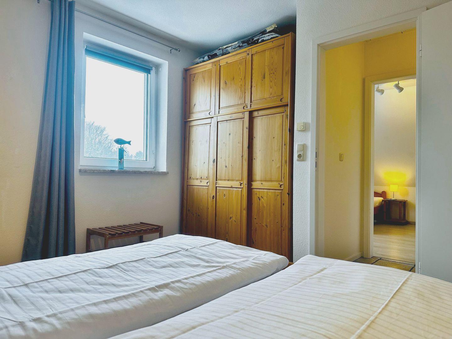Die beiden Schlafräume im Obergeschoss sind mit Verdunklungsplissees ausgestattet, die für eine angenehme Nachtruhe sorgen. WLAN steht Ihnen zur Verfügung.