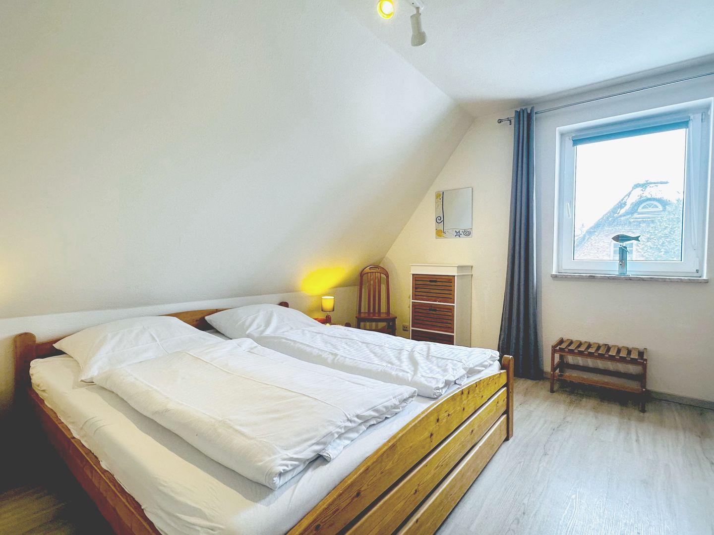 1995 erbaute, ruhige Reetdach-Reihenhausanlage im idyllischen Dorfteil hinter den Dünen. Dorfzentrum mit Restaurants, Cafés und Einkaufsmöglichkeiten in 3 Gehminuten erreichbar. Seedeich mit Strandübergang nach ca. 8 Minuten Fußweg durch die Dünen. Das 50 qm große Reihenendhaus erstreckt sich über 2 Etagen im dänischen Stil. Ausgestattet mit Kabel-TV, WLAN, Mikrowelle, Waschmaschine, Geschirrspüler, Fußbodenheizung. Terrasse mit Gartenmöbeln, PKW-Stellplatz am Haus. Erdgeschoss: Wohnraum mit Essecke und offener Küche, kleines Duschbad/WC, Abstellraum. Obergeschoss: 2 Schlafräume, 4 Betten (1 Doppelbett, 2 Einzelbetten). Zusätzlicher Fernseher im Schlafraum.