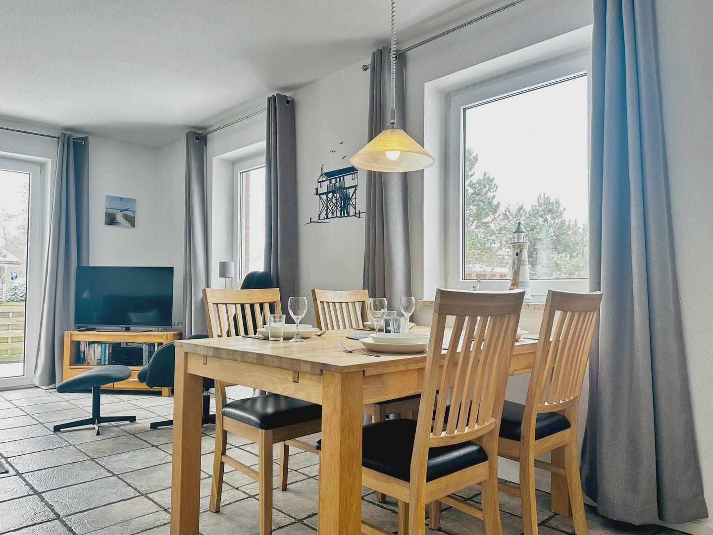 Herzlich willkommen in unserer ruhigen Reetdach-Reihenhausanlage, direkt hinter den Dünen. Das Dorfzentrum erreichen Sie in ca. 3 Gehminuten und zum Seedeich mit Strandübergang benötigen Sie ca. 8 Minuten.