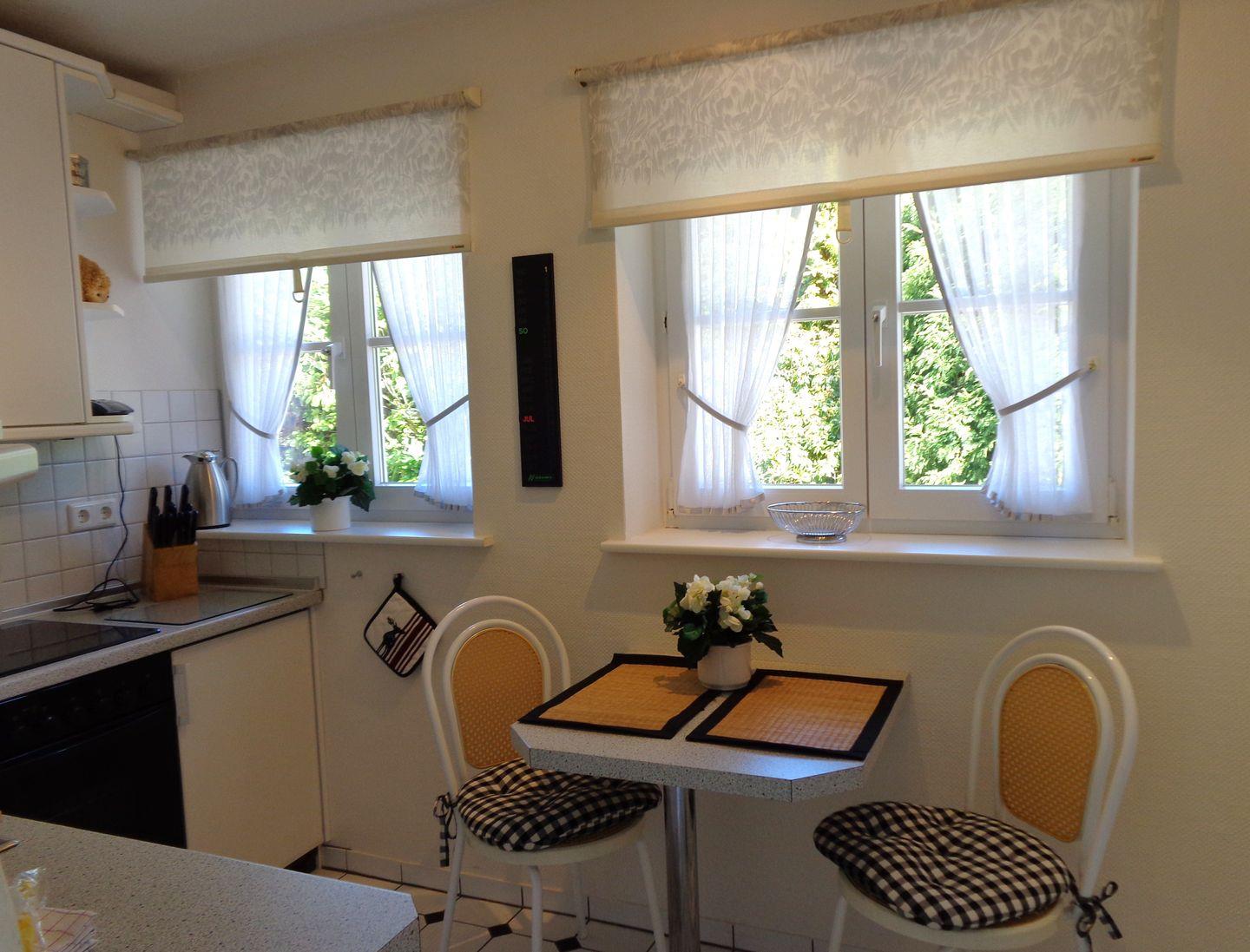 Qualitativ hochwertige Ausstattung mit Kabel-TV, Stereoanlage, Geschirrspüler, Herd mit Backofen, Mikrowelle, möblierte Terrasse mit Strandkorb, Gartengrundstück, Abstellraum für Fahrräder und PKW-Stellplatz am Haus.