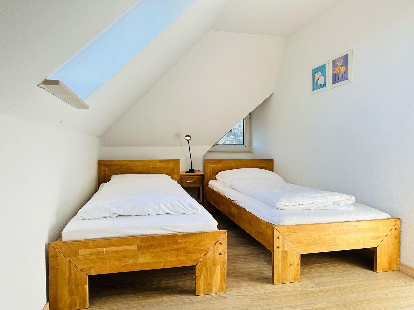 Im Dachgeschoss finden Sie einen weiteren Schlafraum mit zwei Einzelbetten.