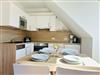 Der Wohn- und Essbereich mit angrenzender offener Küche lädt zu gemütlichem Beisammensein mit Freunden und Familie ein. Das Badezimmer ist mit einer Dusche ausgestattet. Eines der beiden Schlafzimmer befindet sich eine Etage höher, wo Sie zur Ruhe kommen können.