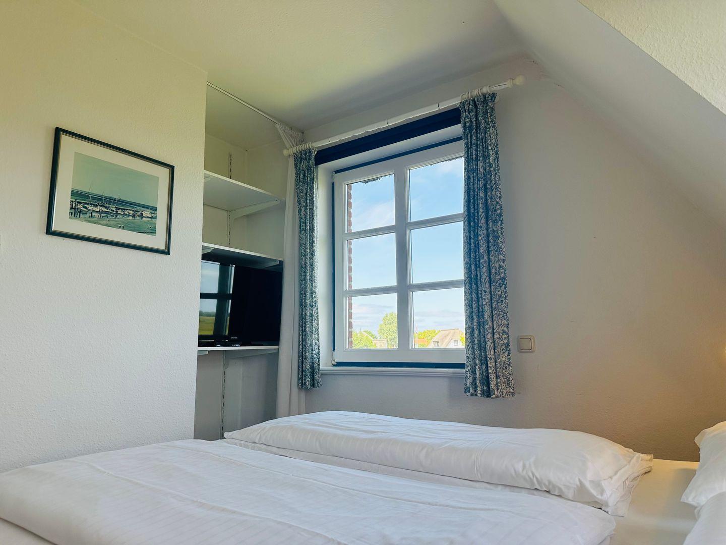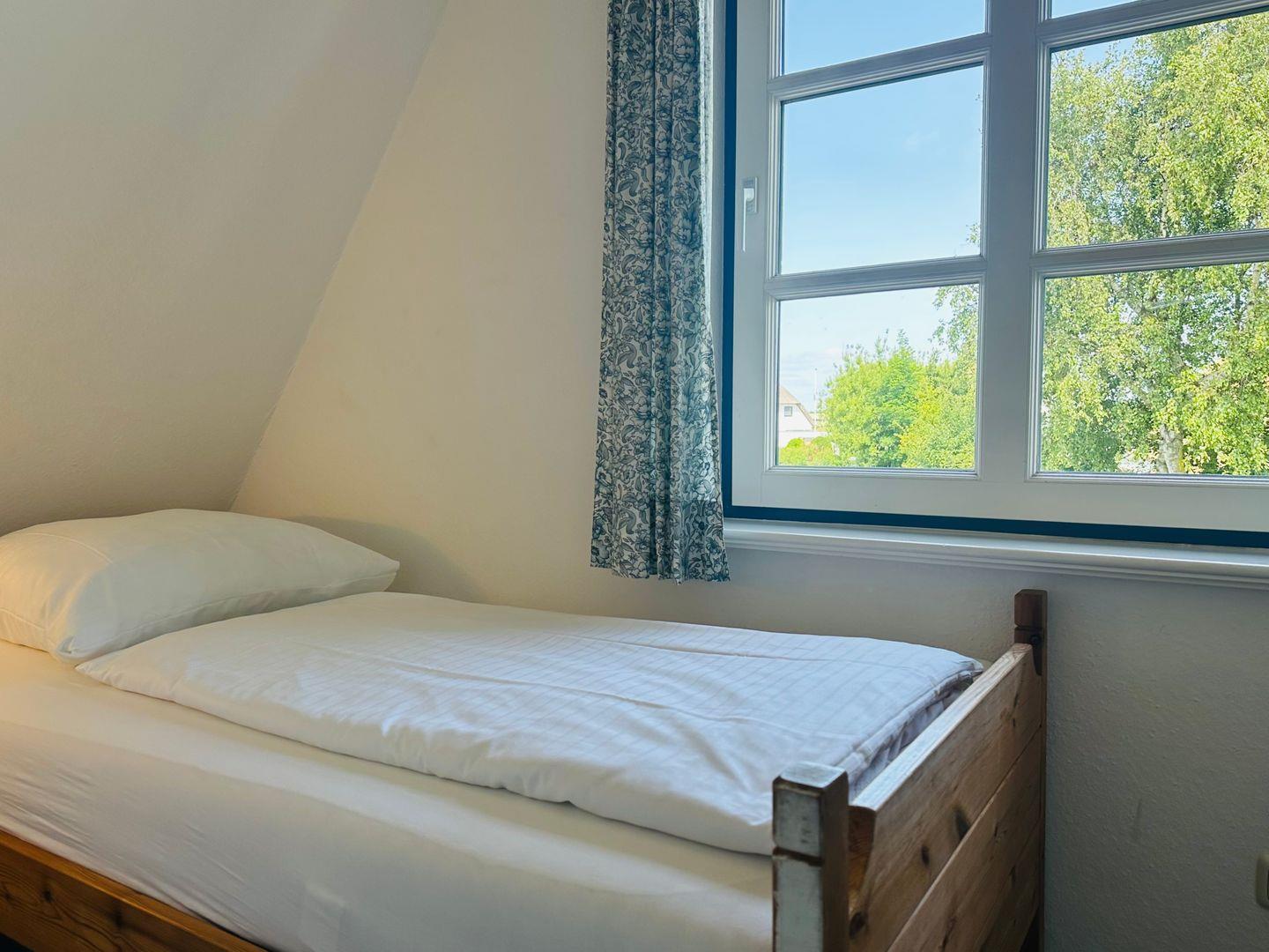 Im Erdgeschoss finden Sie einen Wohnraum mit offener Küche, einen Flur und einen Abstellraum. Das Obergeschoss umfasst 2 Schlafräume (1 Doppelbett, 1 Einzelbett) sowie ein Badezimmer mit Dusche, Eckbadewanne und WC. Zur Verfügung stehen außerdem eine Terrasse mit Gartenmöbeln und Strandkorb, ein kleines Gartenhaus und ein PKW-Stellplatz.