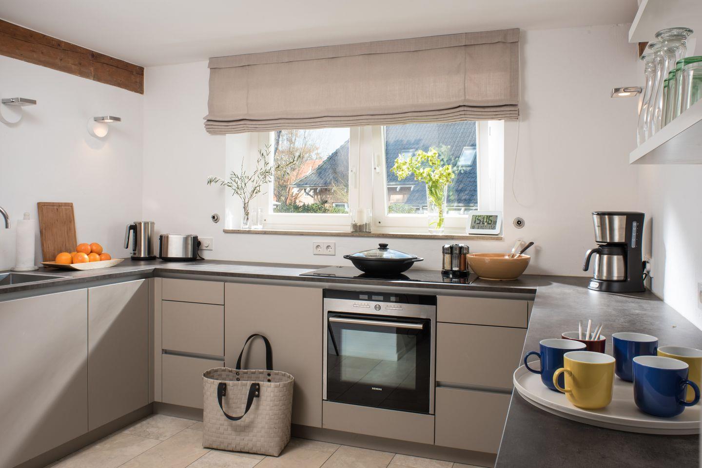 Die offene Küche überzeugt mit ihrer Ausstattung, das Obergeschoss mit ihrer Galerie und der Kamin im Wohnbereich sorgt für wohlige Momente im Urlaub.