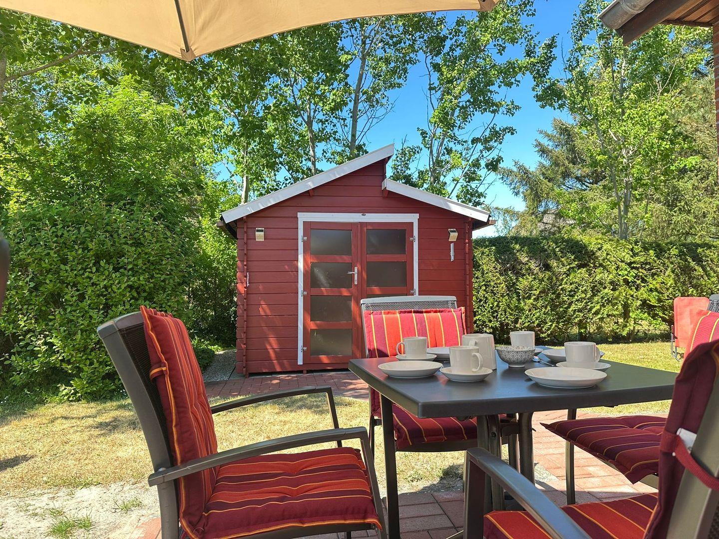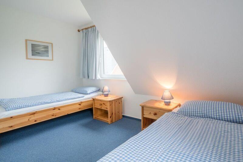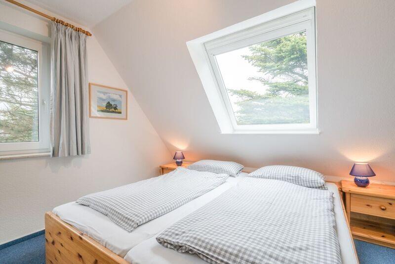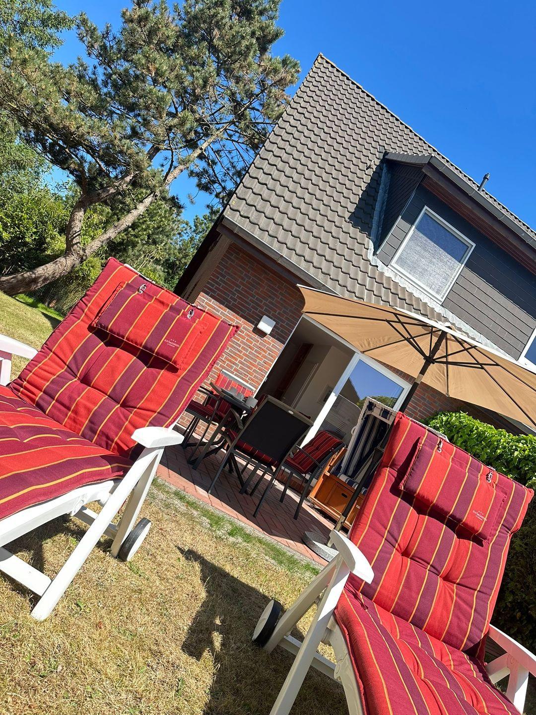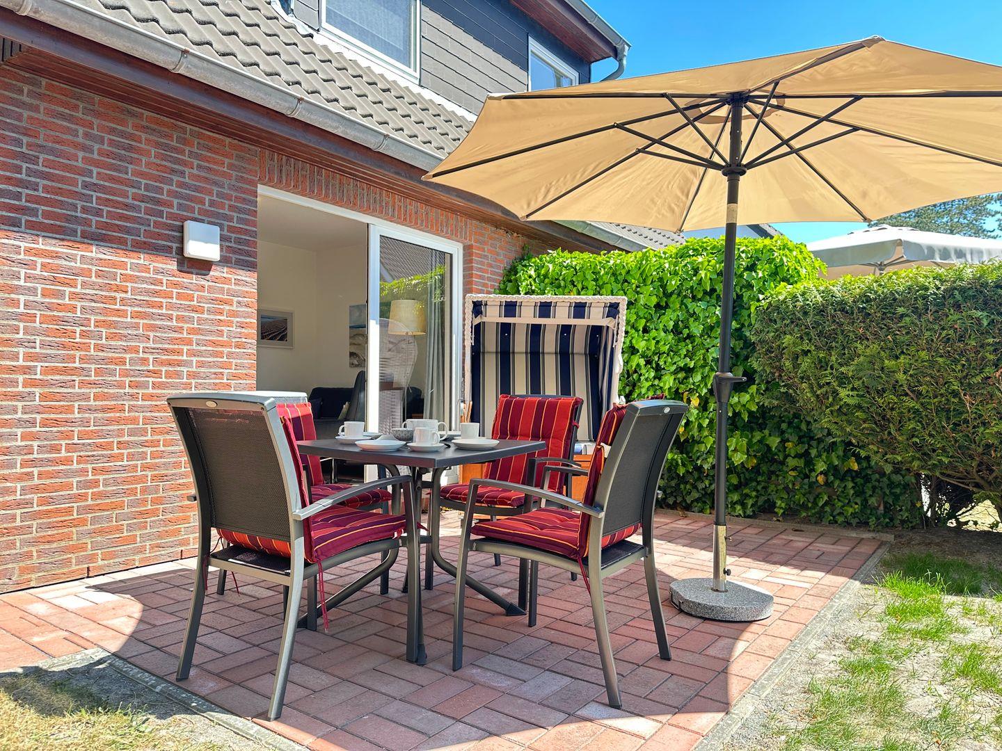 Im Obergeschoss erwarten Sie zwei Schlafzimmer für erholsame Nächte. Draußen stehen eine Terrasse mit Gartenmöbeln und ein Strandkorb bereit – der ideale Ort, um den Tag ausklingen zu lassen.