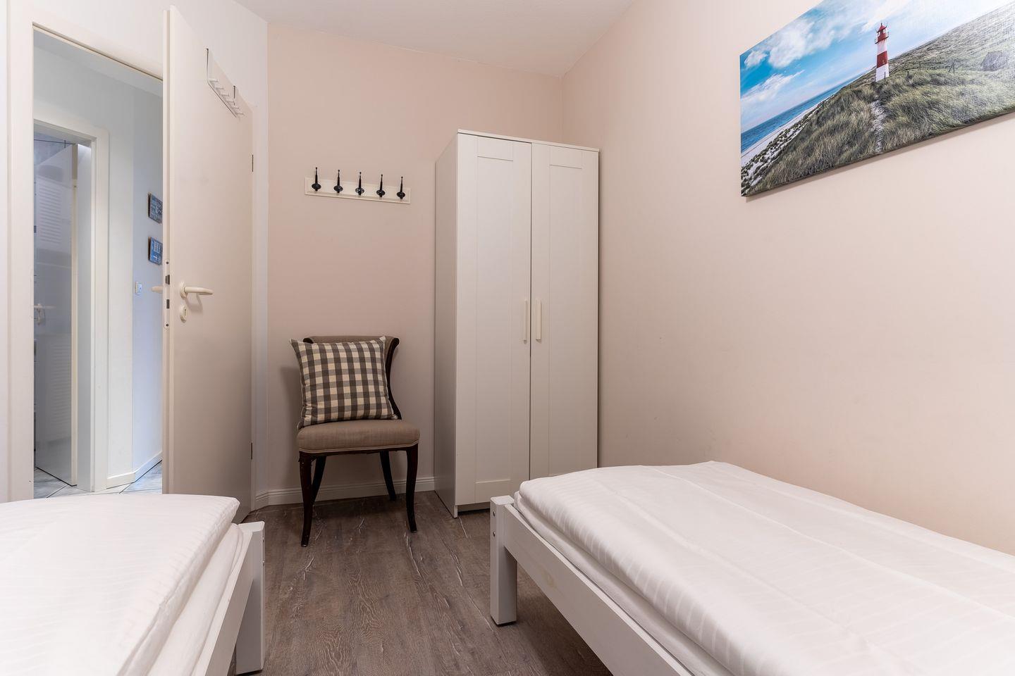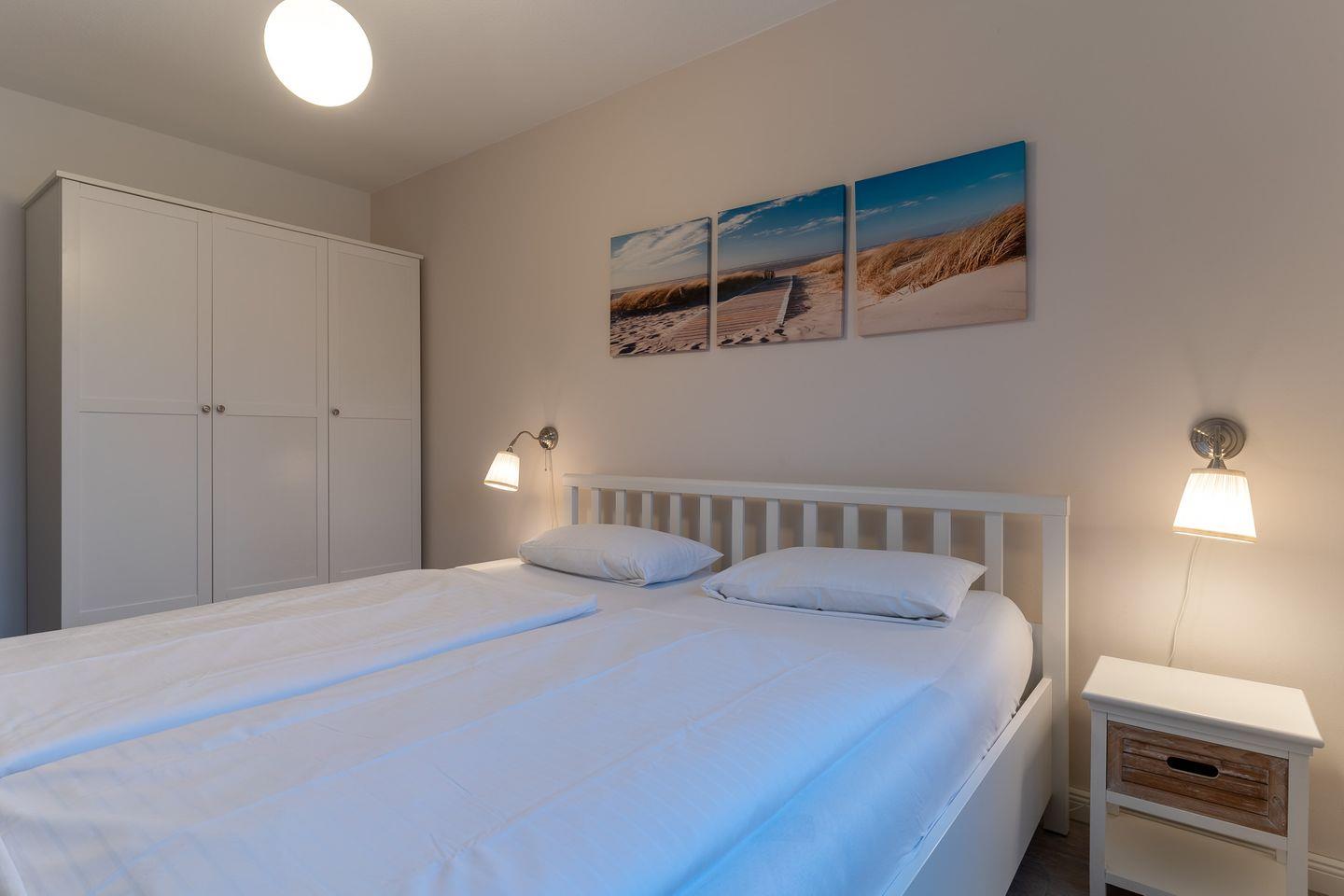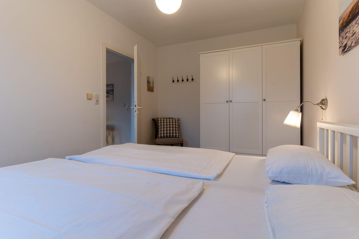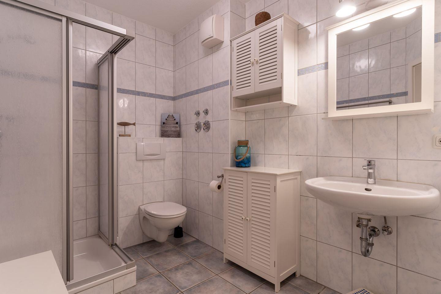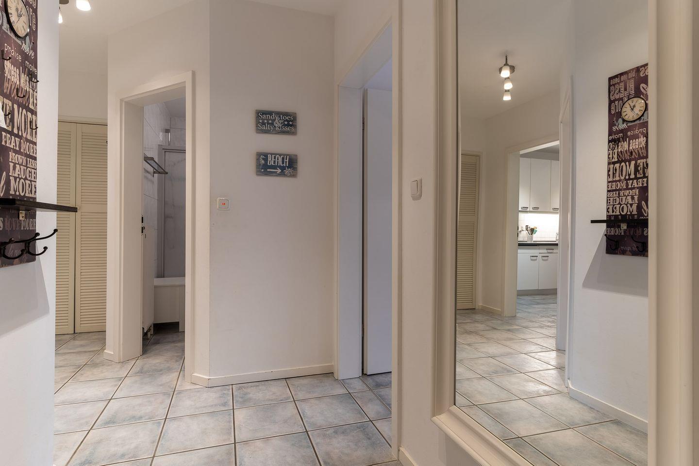 Die Wohnung erstreckt sich über 57 qm im Erdgeschoss und ist in einem freundlichen und maritimen Stil eingerichtet.