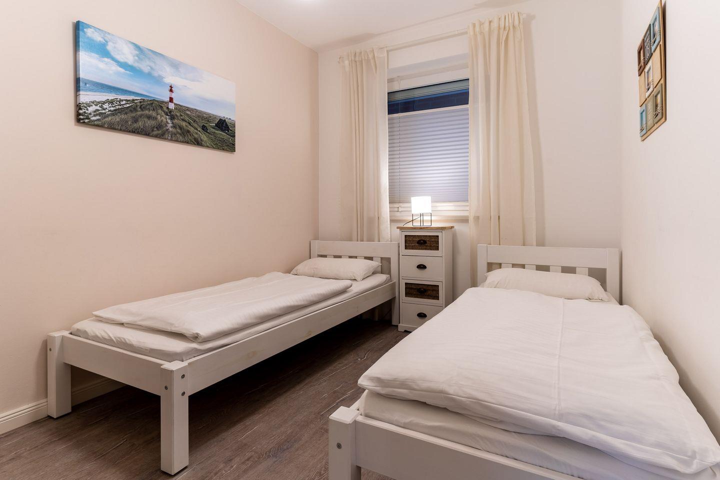 Ferienwohnung Am Deich 2a im Haus am Seedeich - Diese Wohnung gehört zu einer Appartementanlage mit 19 Wohneinheiten, die 2001 fertiggestellt wurde. Die Anlage liegt in unmittelbarer Strandnähe am Ordinger Seedeich. Von hier aus erreichen Sie in etwa 7 Minuten die malerische Ordinger Sandbank und in ca. 15 Minuten das Zentrum von St. Peter-Bad. Ein Bäcker befindet sich gleich um die Ecke!