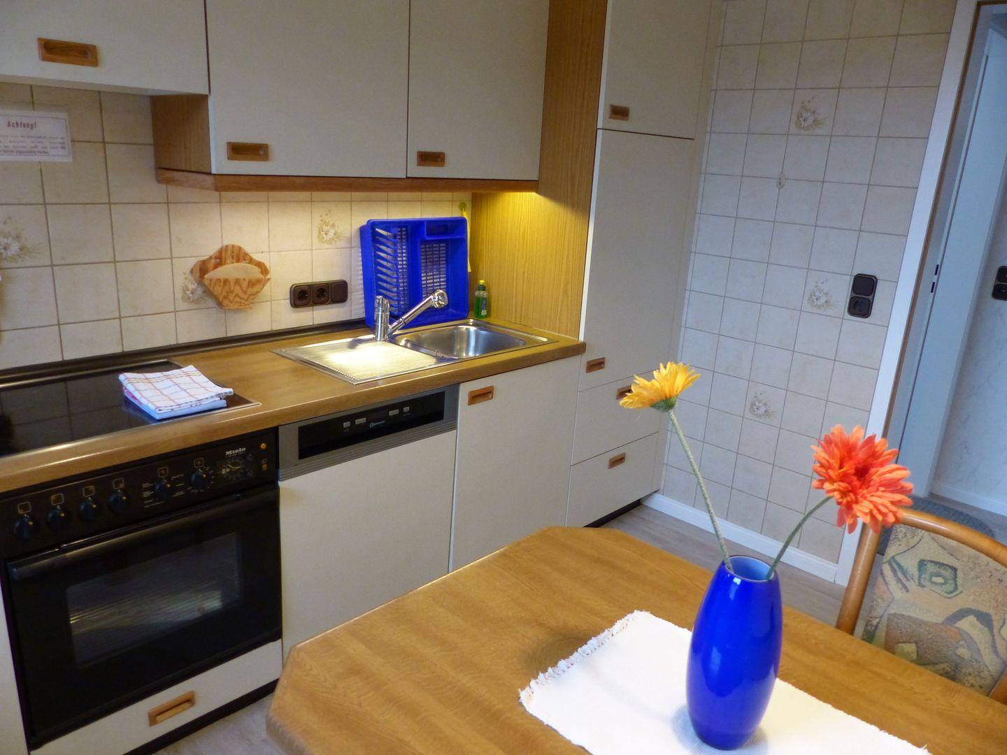 Die Küche ist gut ausgestattet mit u.a. Geschirrspüler und Backofen.