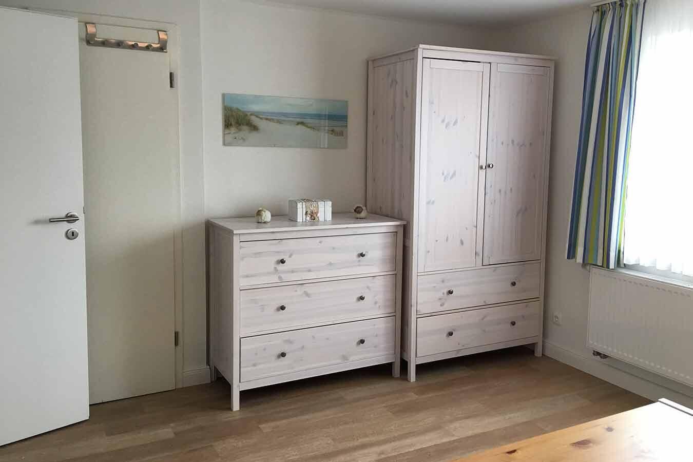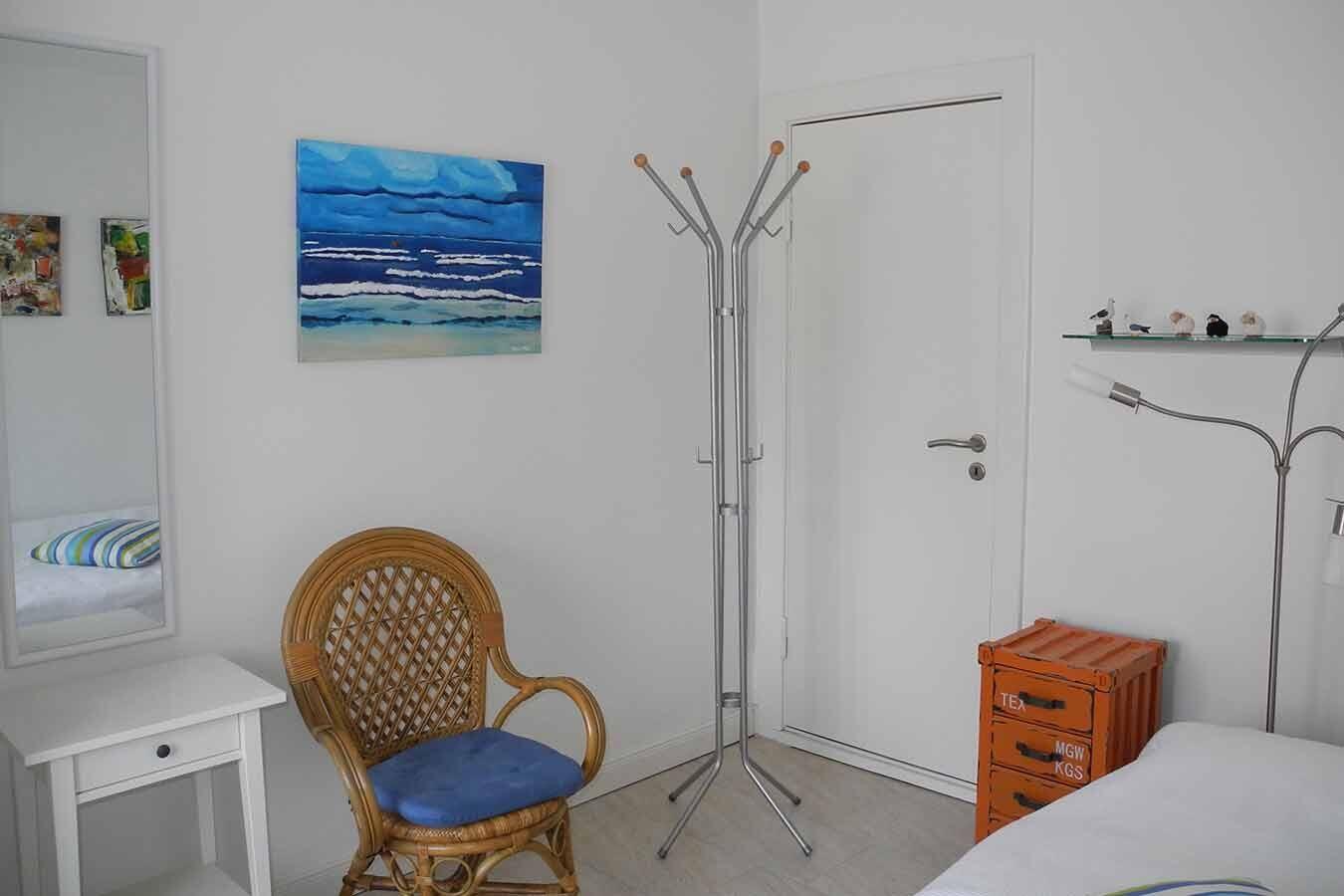 Ein weiterer Schlafraum ist im Erdgeschoß. Die Einrichtung ist hell und freundlich gehalten.