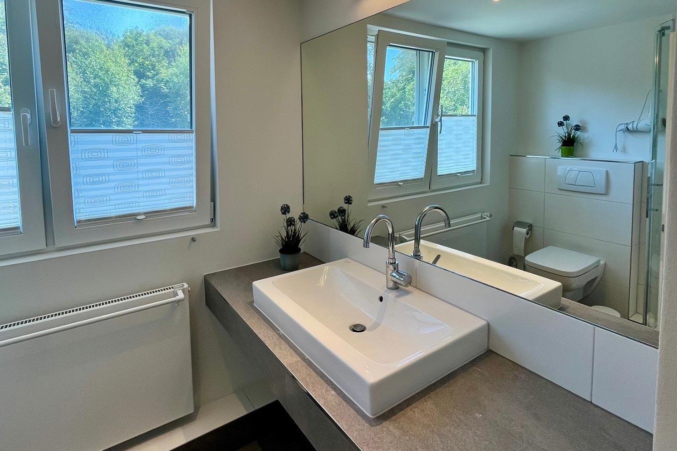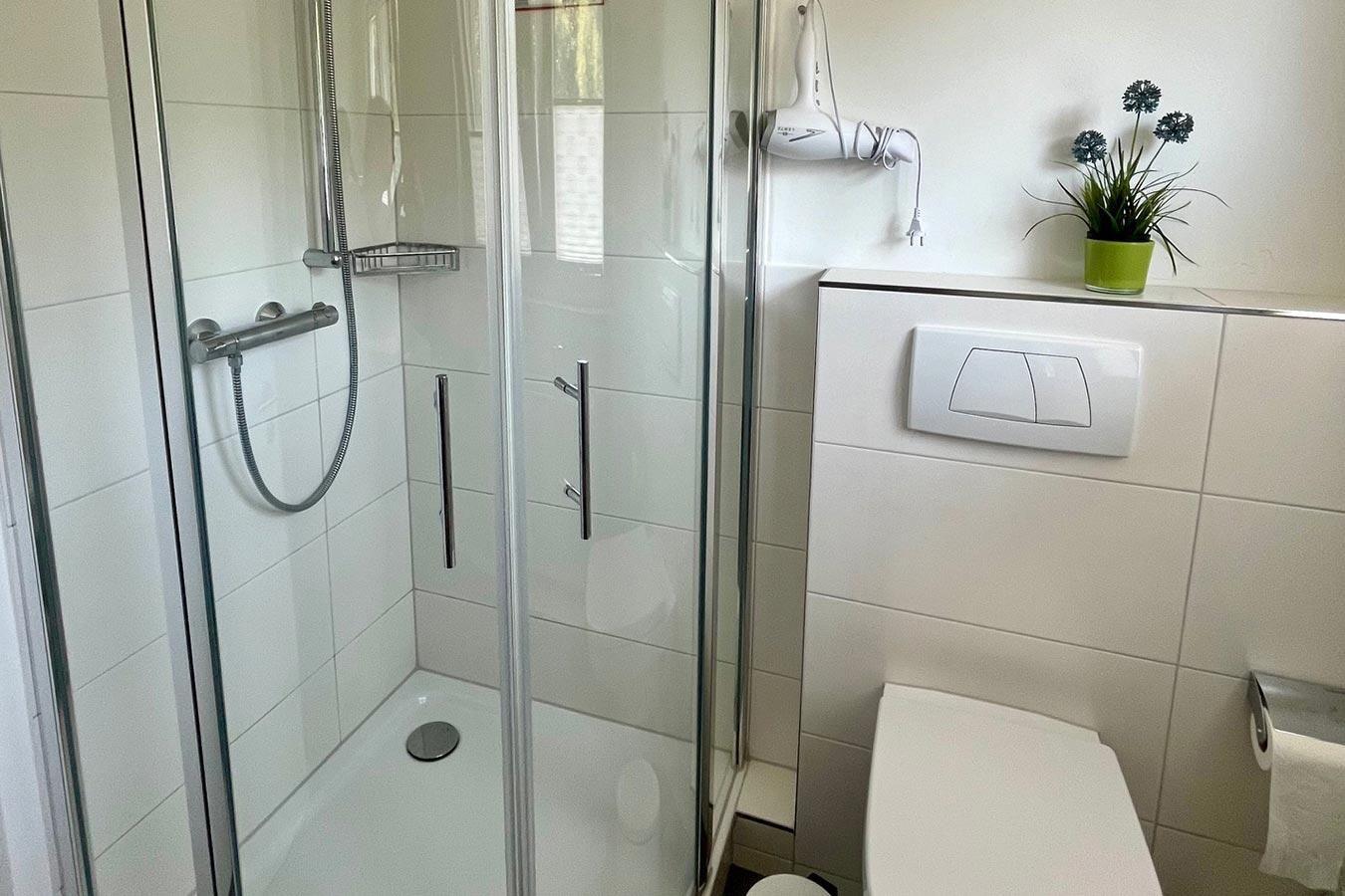 Das Haus mit ca. 90 m2 Wohnfläche hat auf beiden Etagen ein modernes Bad mit Dusche/WC.