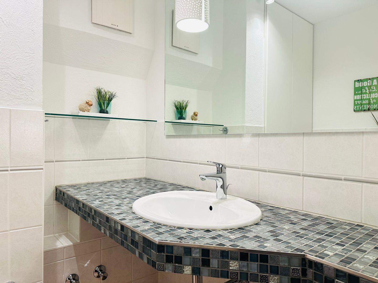 Auf Wunsch kann die hauseigene Sauna mit Ruhebereich im Untergeschoss kostenlos genutzt werden. Der Balkon mit Gartenmöbeln bietet einen wunderschönen Blick ins Grüne, da sich dort ein kleines Wäldchen befindet.