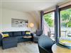Der Wohnraum der Wohnung ist ansprechend gestaltet und verfügt über eine Essecke sowie eine offene Küche. Hier lädt eine behagliche Atmosphäre zum gemeinschaftlichen Kochen und Verweilen ein. Ein Flachbildfernseher sorgt für Unterhaltung.