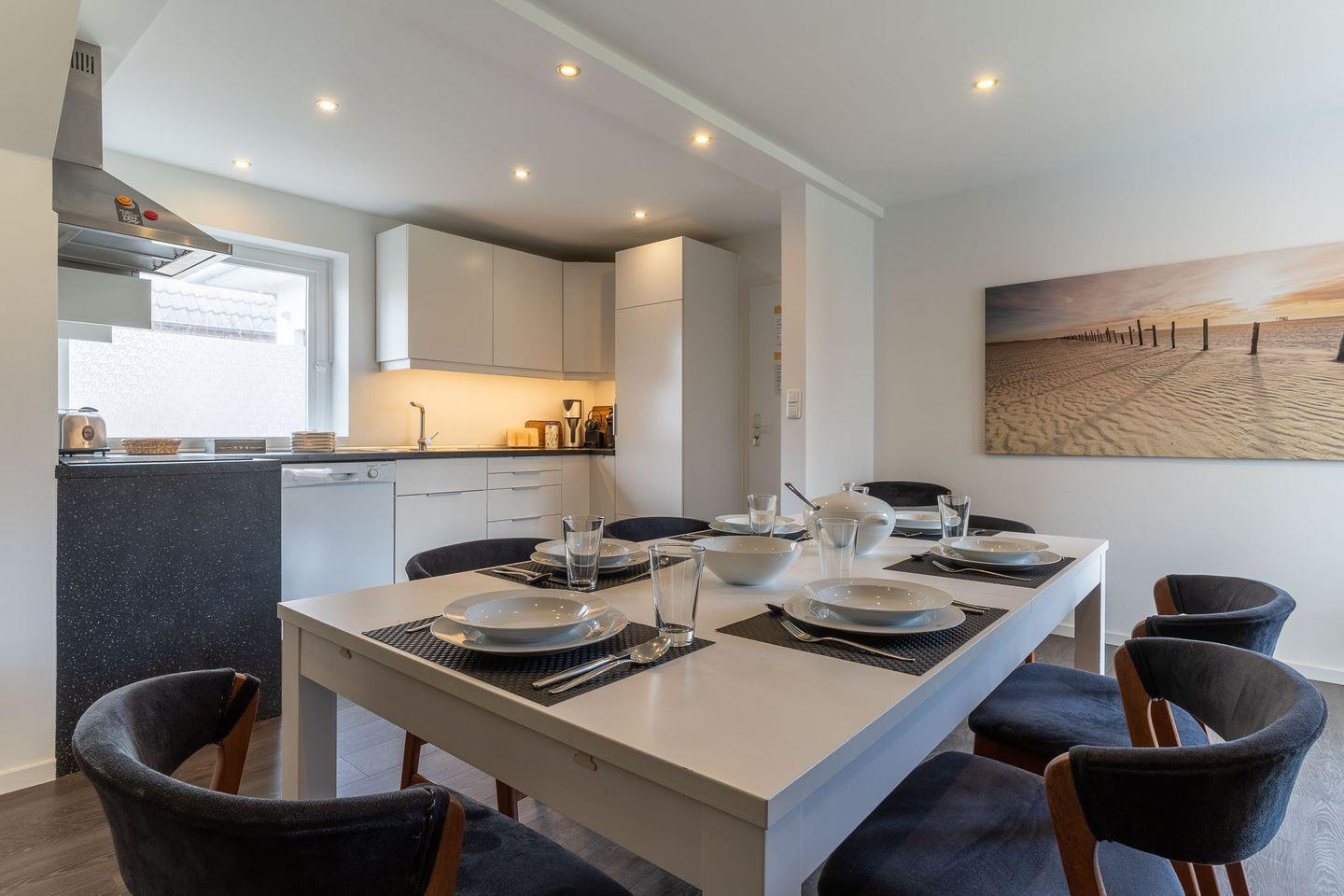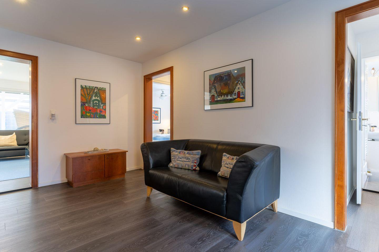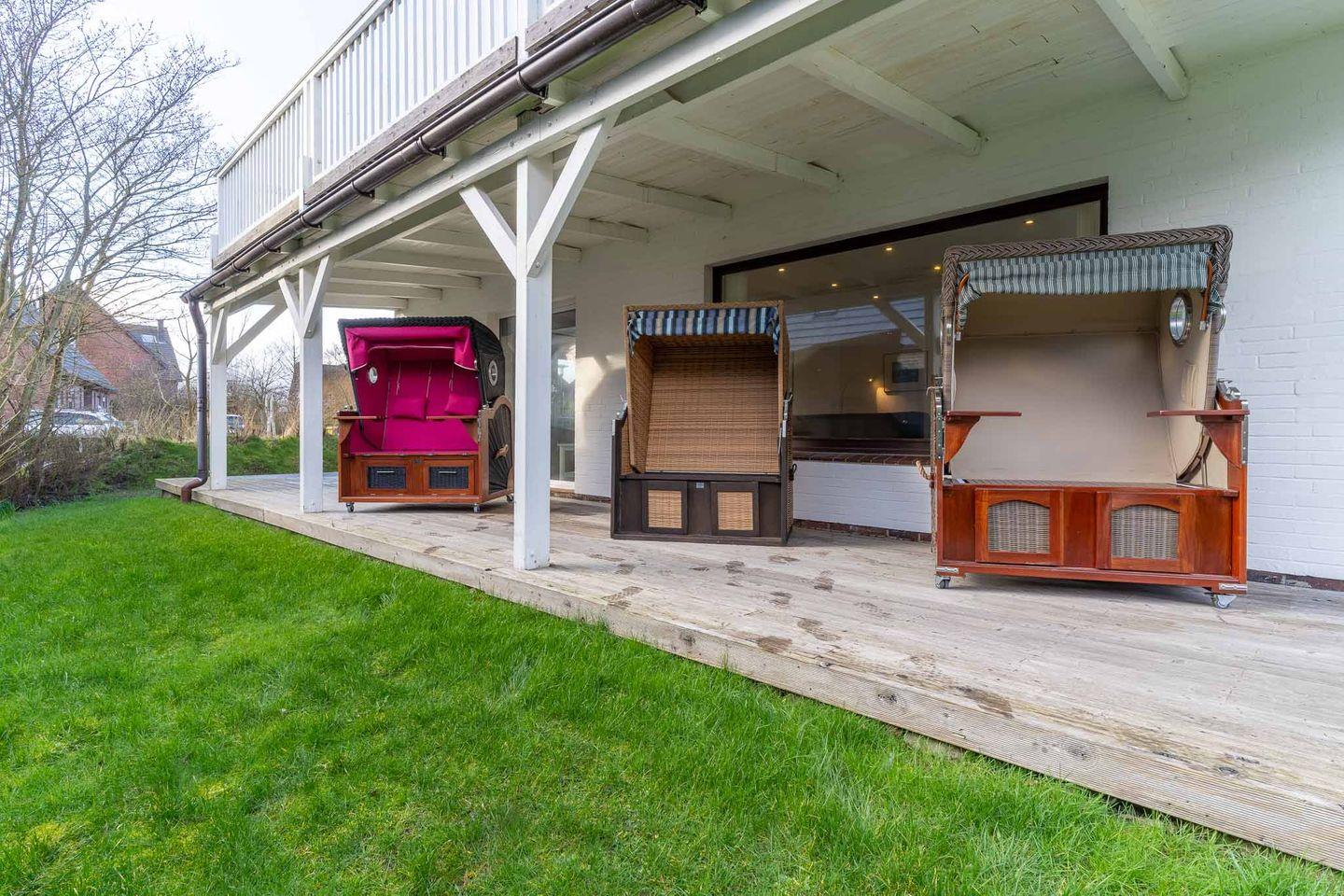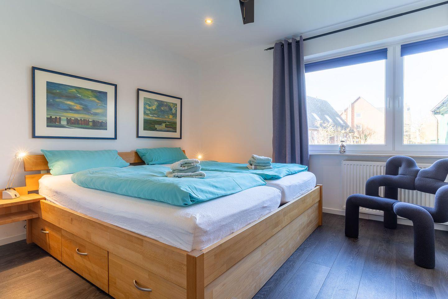 Erleben Sie einen komfortablen und entspannten Urlaub in dieser großzügigen 4-Sterne-Ferienwohnung mit 100 qm Wohnfläche, die Platz für bis zu vier Personen bietet. Die Wohnung im Erdgeschoss eines Einzelhauses besticht durch ihre helle und moderne Einrichtung, die in Kombination mit den Vinylpaneelen in Holzoptik oder Fliesen und den großen Fenstern eine wohnliche Atmosphäre schafft. Das Wohnzimmer ist mit einer bequemen Stoffgarnitur, Flachbildschirm-TV und einem Stereosystem inklusive Bluetooth ausgestattet. In den beiden Schlafzimmern mit Doppelbetten und großen Kleiderschränken werden Sie erholsamen Schlaf finden. Die voll ausgestattete Küche bietet alles, was Sie zum Kochen und Genießen benötigen, einschließlich Nespresso und Dolce Gusto Kaffeemaschine. Das Vollbad mit Fußbodenheizung, Badewanne, Dusche, Waschbecken, WC und Handtuchtrockner ist ebenso wie das separate Gäste-WC ein Highlight der Wohnung. Außerdem steht Ihnen ein eigener PKW-Stellplatz und ein abschließbarer Fahrradschuppen zur Verfügung. Auf den Terrassen und im Garten können Sie entspannen und die Sonne genießen. Ein Strandkorb sorgt für zusätzlichen Komfort. Bettwäsche und Handtücher sind inklusive und ein Kinderbett sowie ein Kinderhochstuhl können bei Bedarf zur Verfügung gestellt werden. Strom, Heizung und Wasser sowie die Nutzung des WLAN-Zugangs zum Internet sind ebenfalls im Mietpreis enthalten. Die Waschmaschine, der Trockner und die Sauna werden durch einen Euromünzenautomaten bedient. Bitte beachten Sie, dass Haustiere und Rauchen in der Wohnung nicht gestattet sind. Ein ideales Domizil für Ihren entspannten und unbeschwerten Urlaub!