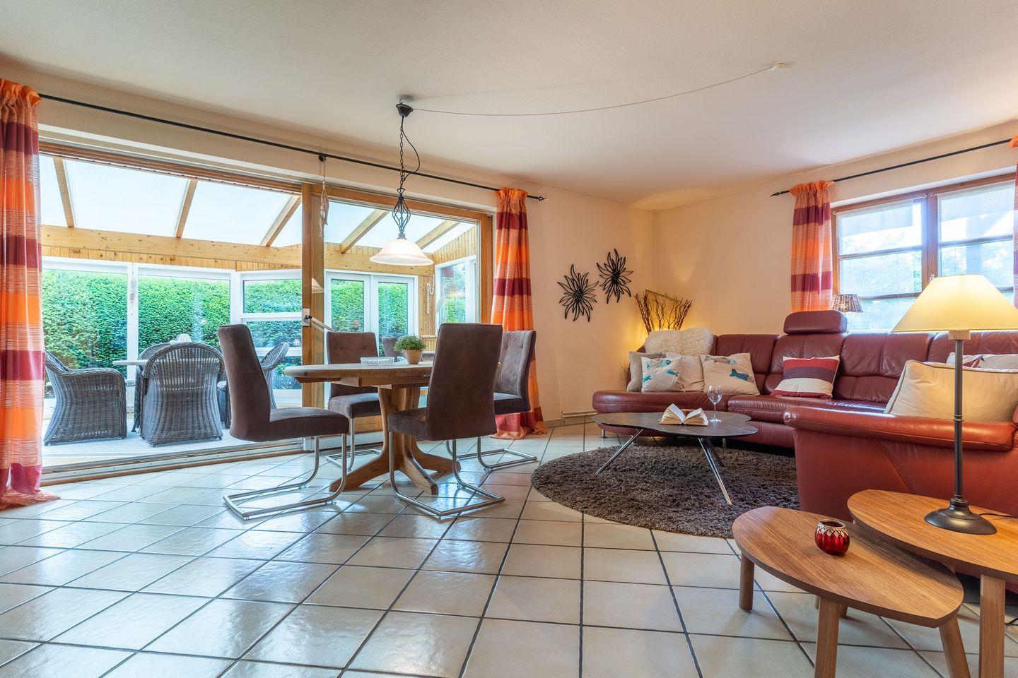 Willkommen in dieser geräumigen, stilvoll eingerichteten Erdgeschosswohnung mit etwa 100 qm Wohnfläche! Hier können Sie Ihren Urlaub in vollen Zügen genießen und sich rundum wohlfühlen. Die Wohnung verfügt über einen gemütlichen Wintergarten sowie eine eigene Terrasse mit Gartenmöbeln, auf der Sie bei schönem Wetter entspannen können.