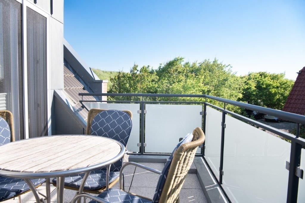 Die offene Wohnküche ist komplett ausgestattet und bietet alles, was Sie für eine angenehme Selbstversorgung benötigen. Sie verfügt über einen Backofen mit Cerankochfeld, eine Mikrowelle, einen Geschirrspüler und einen Kühlschrank mit Gefrierfach. In den beiden Schlafzimmern finden Sie ein Doppelbett (2x80x200cm im Obergeschoss) und ein großes Doppelbett (2x90x200cm im Dachgeschoss) sowie Kleiderschränke und Zugang zu zweien der drei Balkone. Der Balkon im Dachgeschoss bietet Ihnen eine herrliche Aussicht und ist nach Nordwesten ausgerichtet. Hier können Sie die Abendsonne genießen.